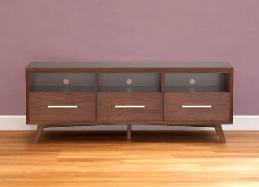 64" Brown Mahogany Solid Wood Open Shelving TV Stand