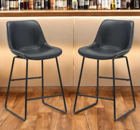 Set of Two Black Faux Leather and Metal Low Back Counter Height Bar Chairs