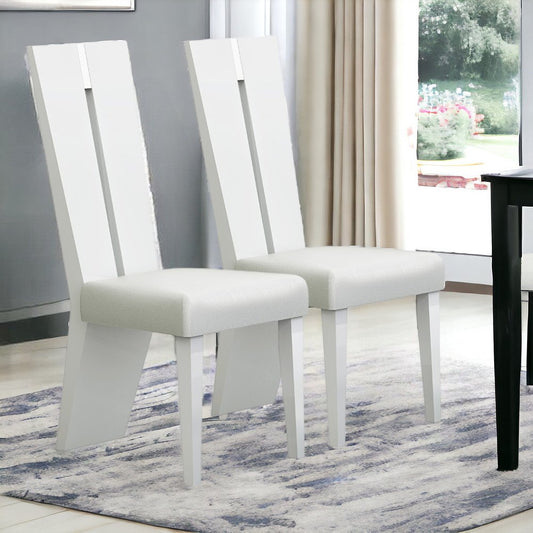 Set of Two White and Silver Upholstered Faux Leather Dining Side Chairs