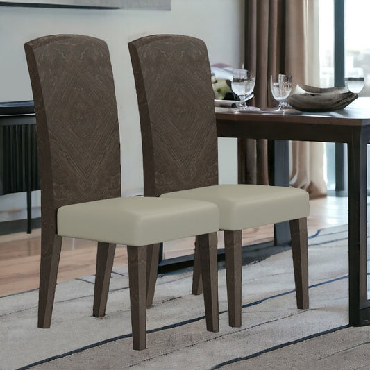 Set of Two Taupe Upholstered Faux Leather Dining Side Chairs