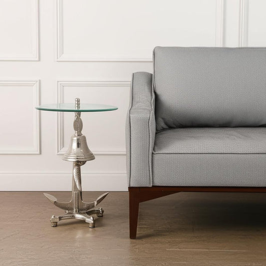 24" Clear and Silver Glass and Aluminum Nautical Bell End Table