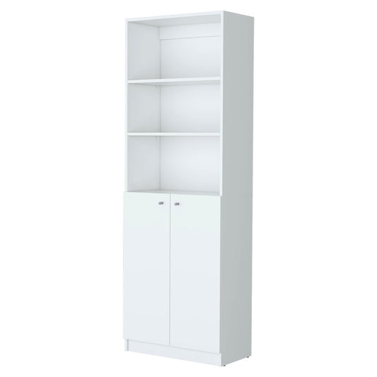 Librería de tres niveles de madera blanca de 71" con dos puertas