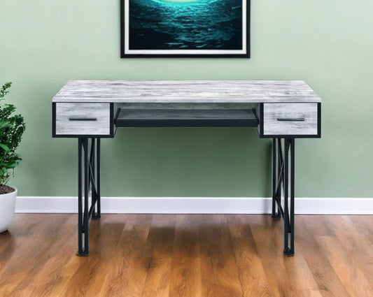 Escritorio para computadora de 47" en blanco y negro antiguo con dos cajones