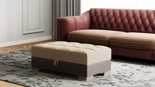 50" Burgundy Black Brown Microfiber Tufted Storage Ottoman