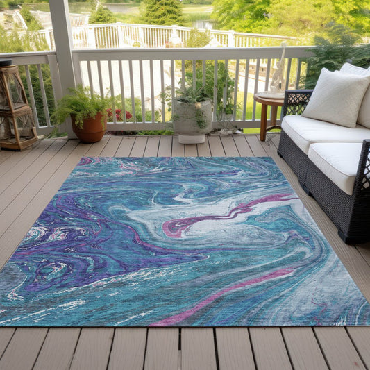9' X 12' Teal Blue Purple And Pink Abstract Washable Indoor Outdoor Area Rug
