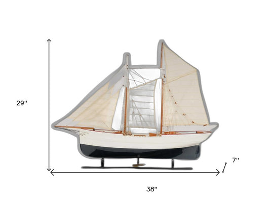 Barco decorativo de madera manufacturada marrón de 8" pintado a mano