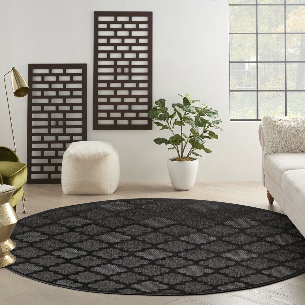 | Keywords | trellis indoor outdoor area rug, indoor outdoor area rug, outdoor area rug, charcoal black round trellis indoor, 10' charcoal black round trellis |