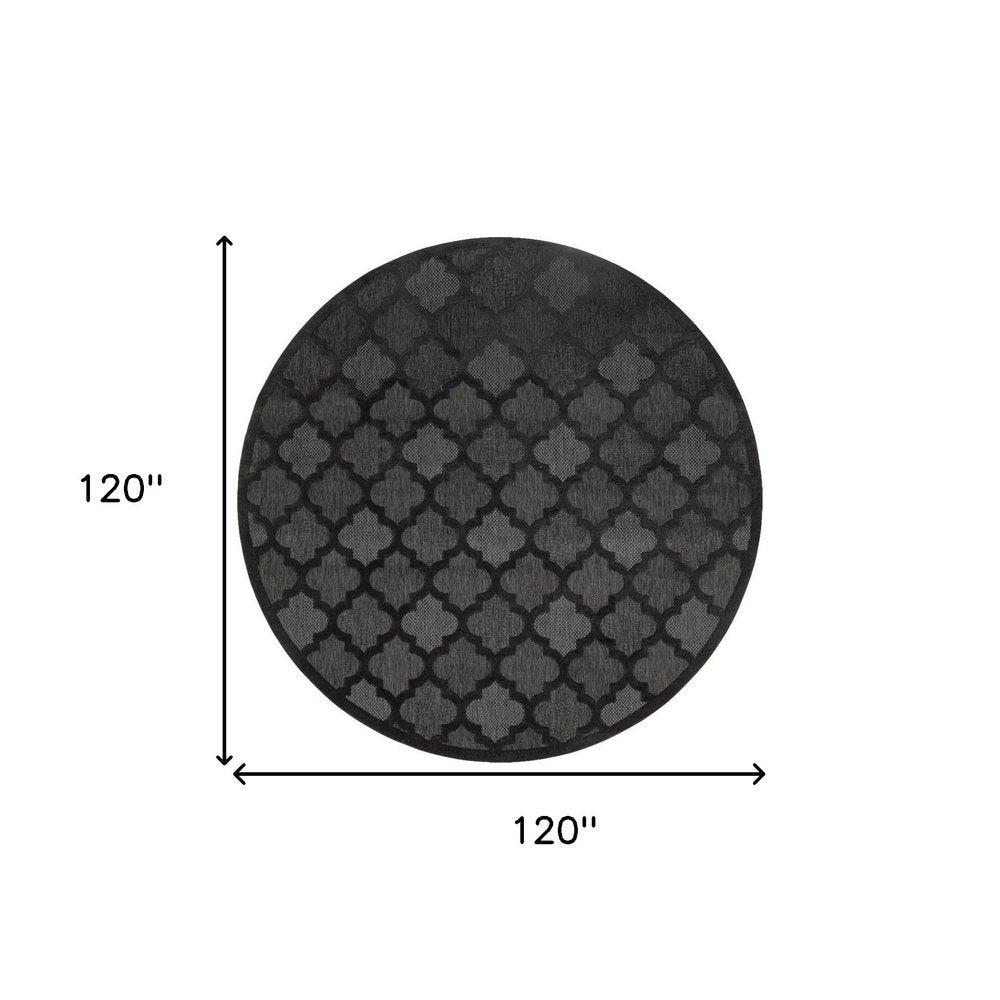 10' Charcoal And Black Round Trellis Indoor Outdoor Area Rug