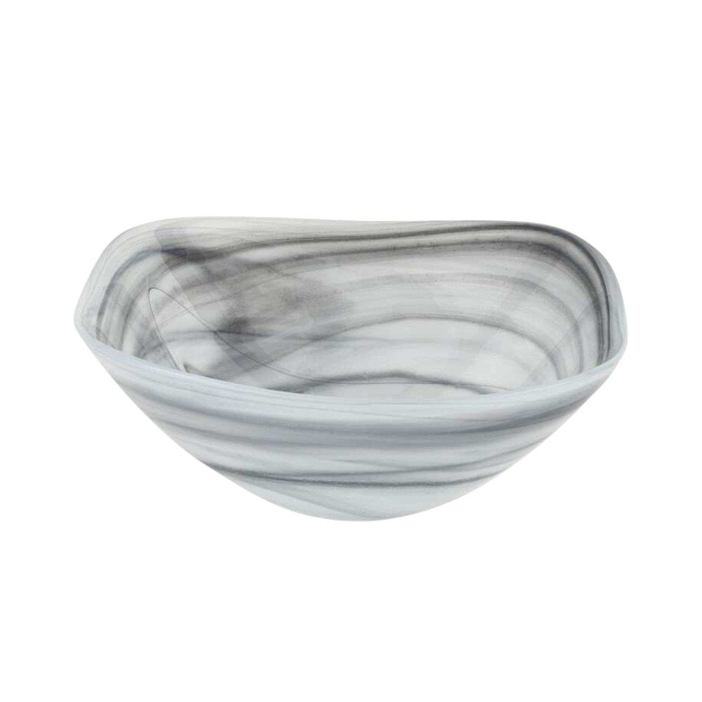 Ensaladera cuadrada de vidrio de alabastro gris y blanco de 25 cm
