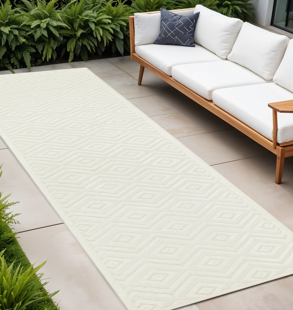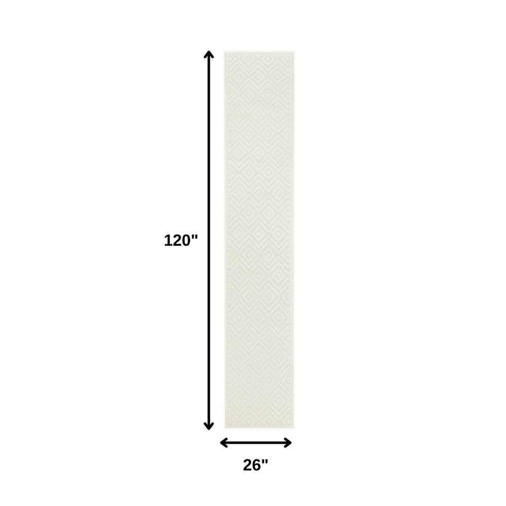 10' Ivory And White Geometric Indoor Outdoor Runner Rug