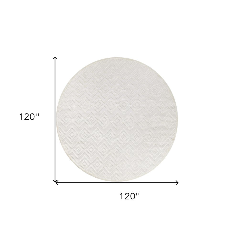 10' Ivory And White Round Geometric Indoor Outdoor Area Rug