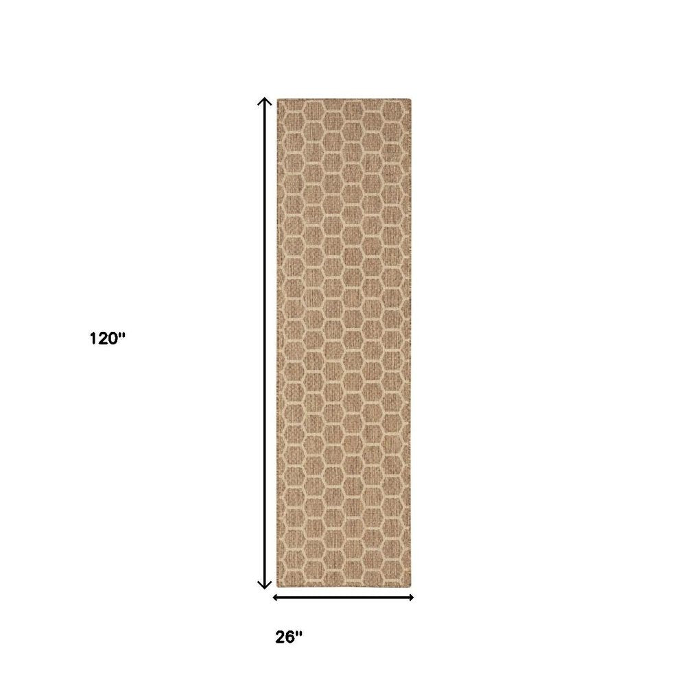 10' Natural And Beige Geometric Indoor Outdoor Runner Rug