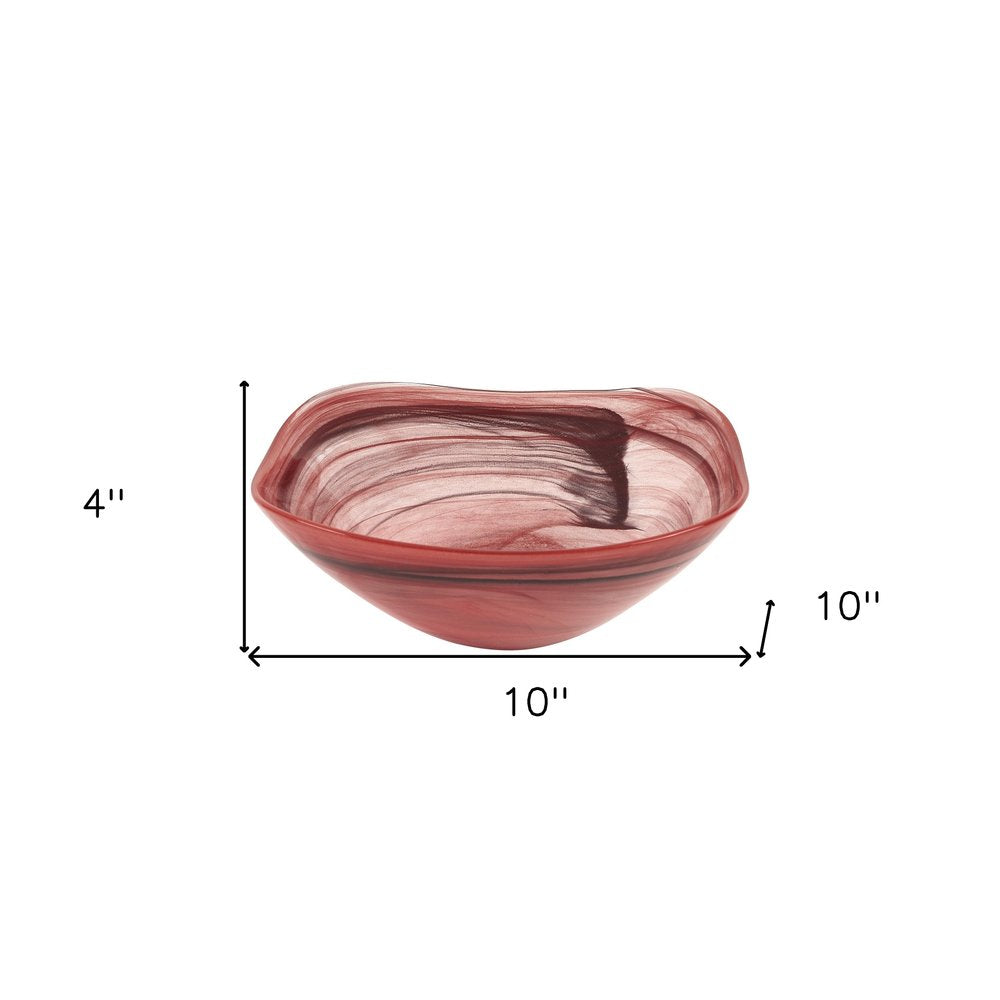 Ensaladera cuadrada de vidrio de alabastro rojo y blanco de 25 cm