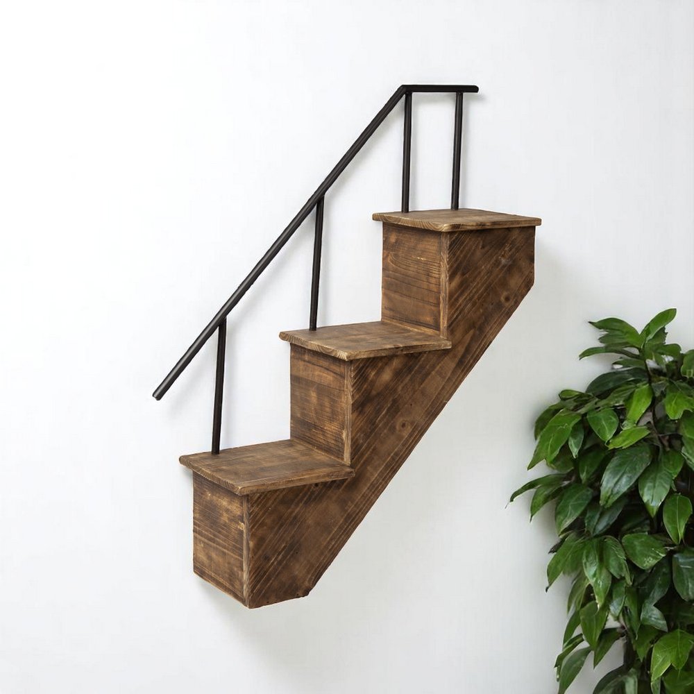 El novedoso estante de pared de 28 cm, de metal marrón y madera maciza, es un complemento elegante para cualquier sala. Fabricado con una mezcla de metal y madera maciza, este estante combina durabilidad con un diseño único y llamativo de escalera. Su moderno estilo industrial complementa una variedad de estilos de decoración, añadiendo un toque de sofisticación rústica. Este estante no solo ofrece una solución práctica para ahorrar espacio, sino que también sirve como elemento decorativo que realza tu espacio interior. Perfecto para exhibir libros, plantas o fotos, transforma cualquier pared en un punto focal funcional que refleja tu estilo único. 73 cm de alto x 28 cm de ancho x 17 cm de profundidad.
