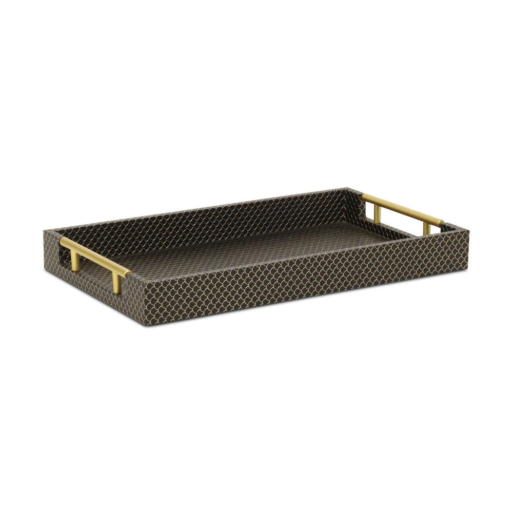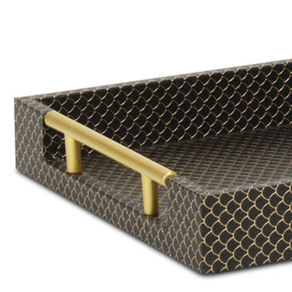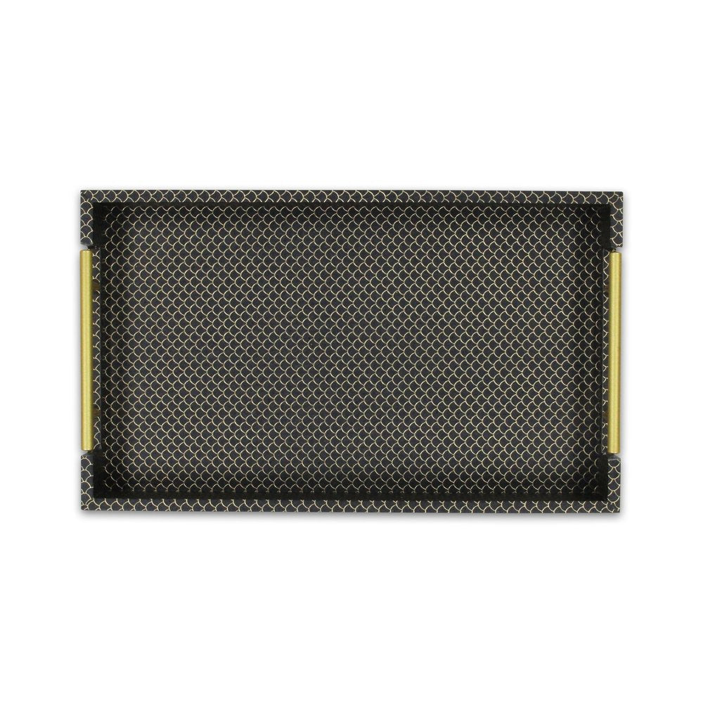 Renueva tu espacio con esta práctica y atractiva bandeja para servir de 40 cm, hecha a mano, con asas, en negro y dorado, con estampado animal. Decorada con un diseño animal, esta pieza no solo es útil, sino también un excelente detalle decorativo. Cuenta con asa para transportarla rápida y fácilmente. Diseñada exclusivamente para uso decorativo, no alimentario, es perfecta para exhibir velas, perfumes, objetos decorativos y más. 4,4 cm de alto x 40 cm de ancho x 23 cm de profundidad.