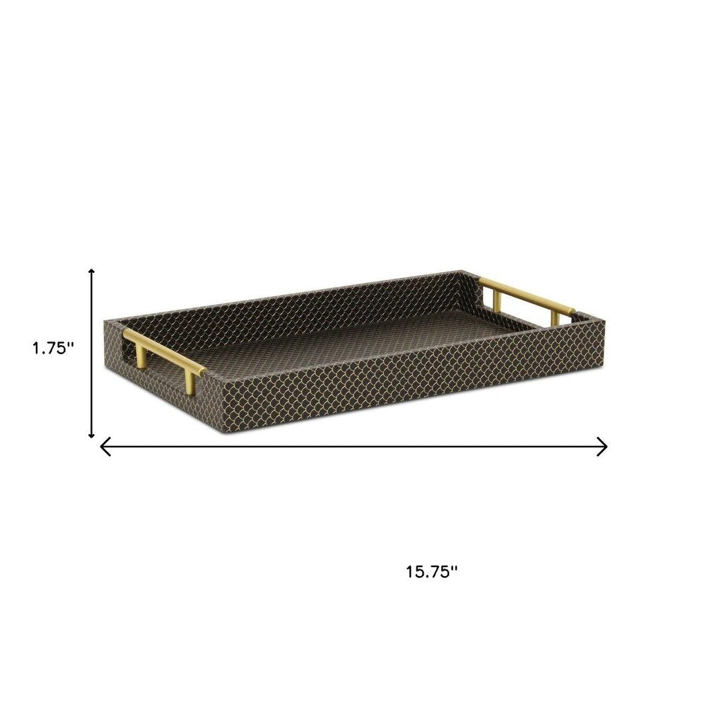 Bandeja para servir hecha a mano con estampado geométrico negro y dorado de 40 cm