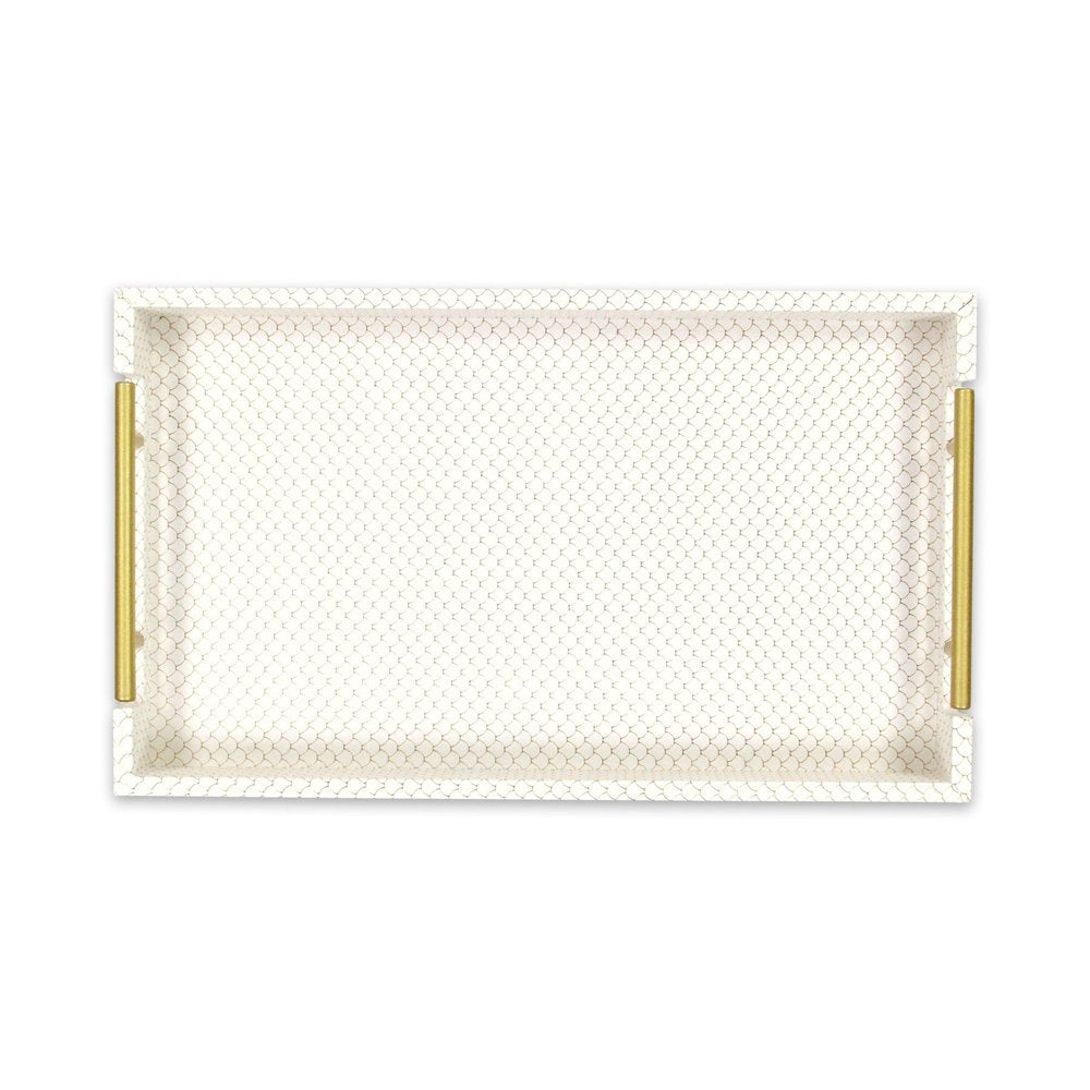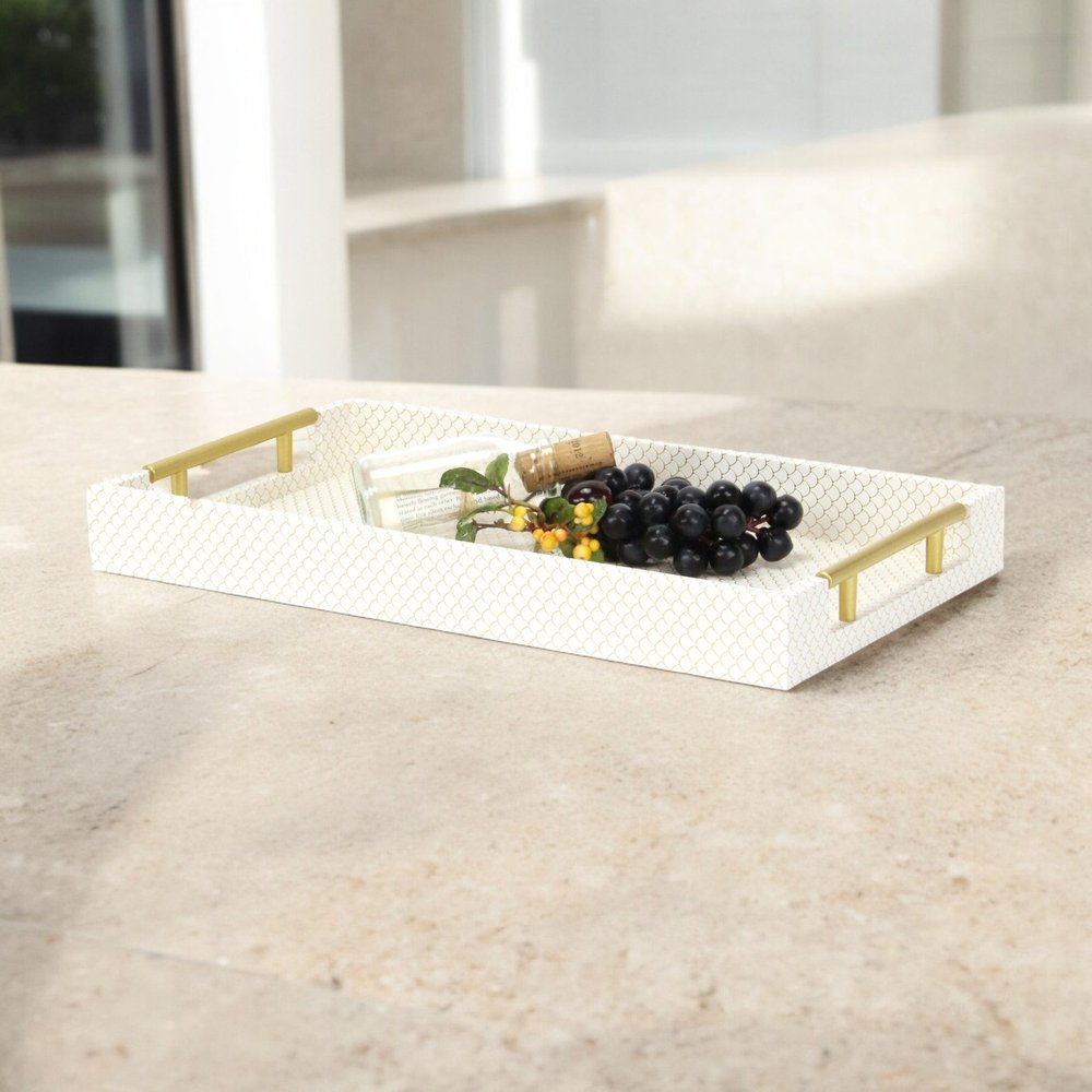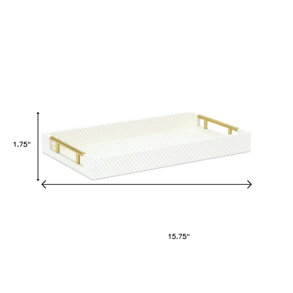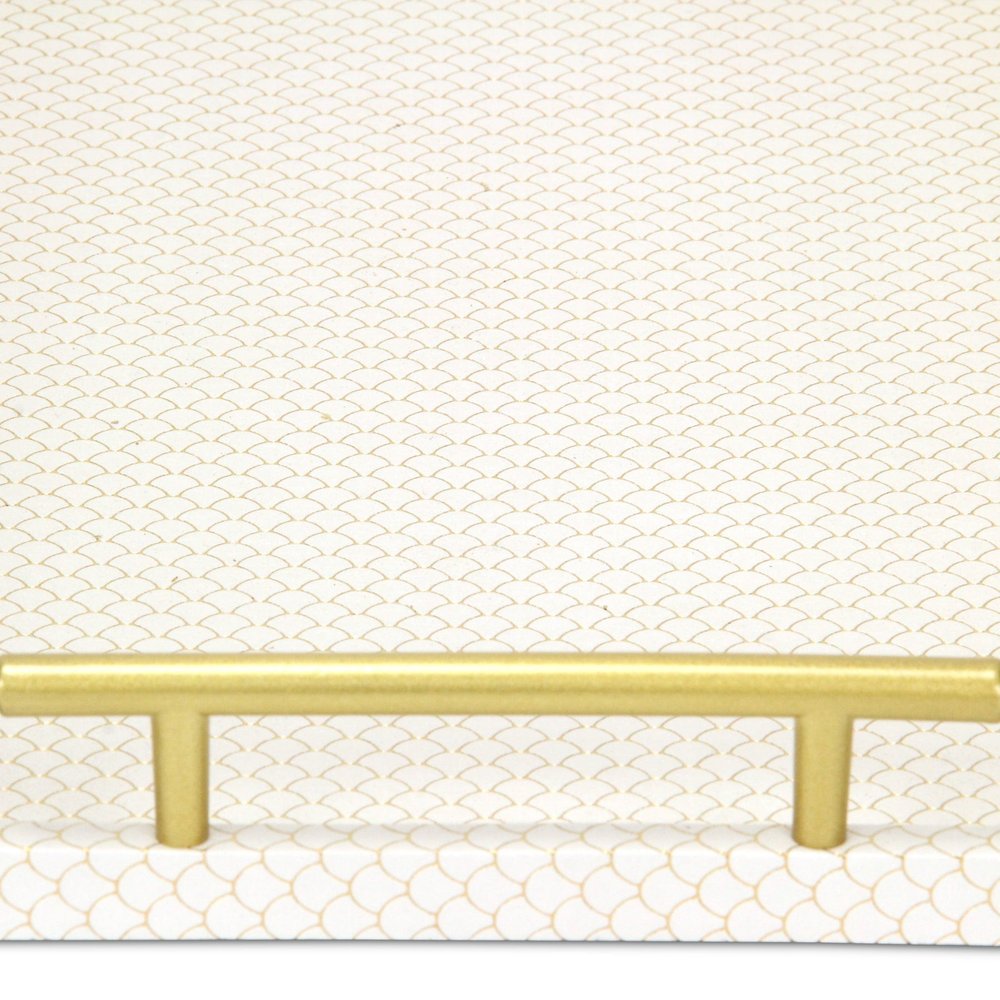 Bandeja de servicio de 40,6 cm con estampado geométrico dorado y marfil, hecha a mano, con asas