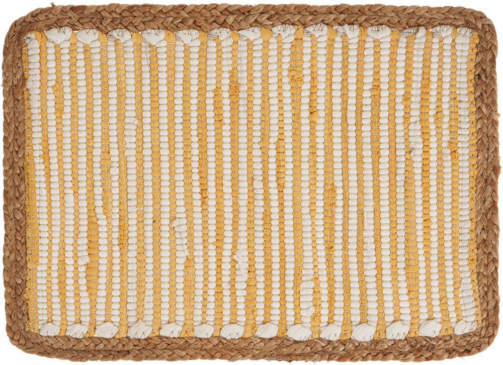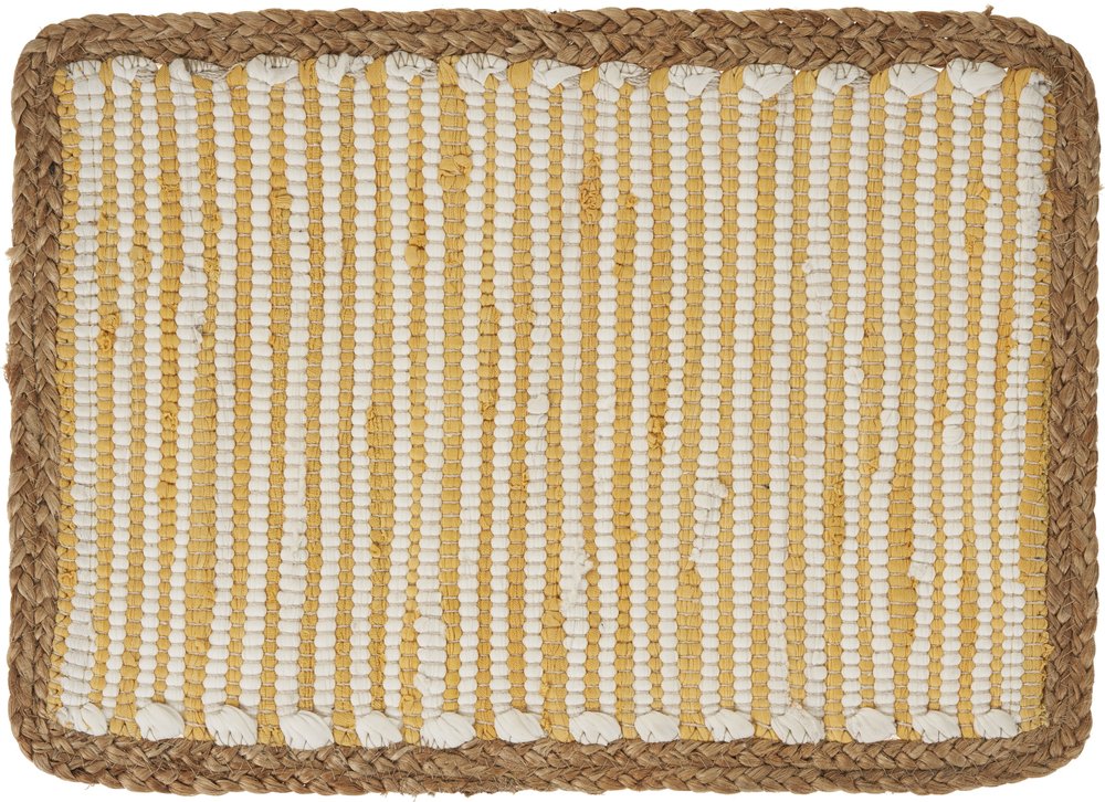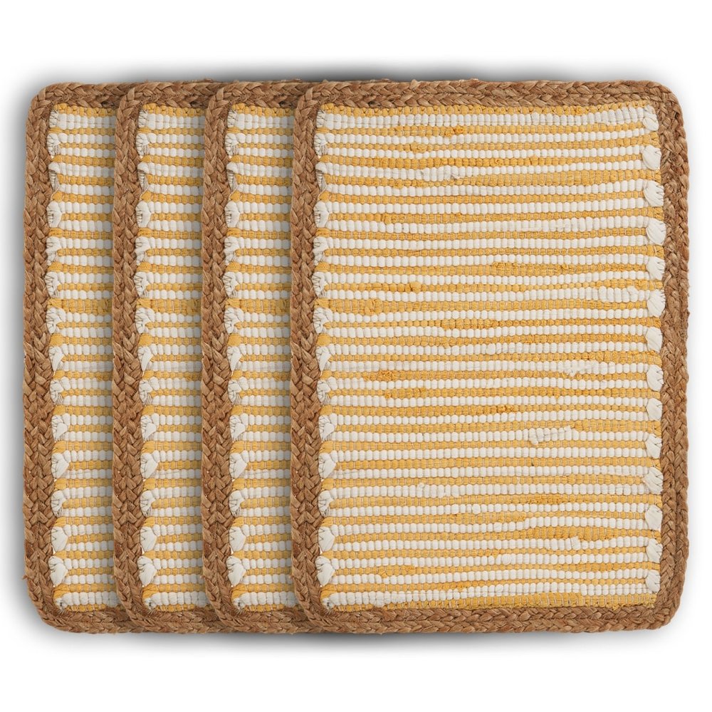 19" Set of Four Cream Yellow And Natural Striped Cotton And Jute Placemats