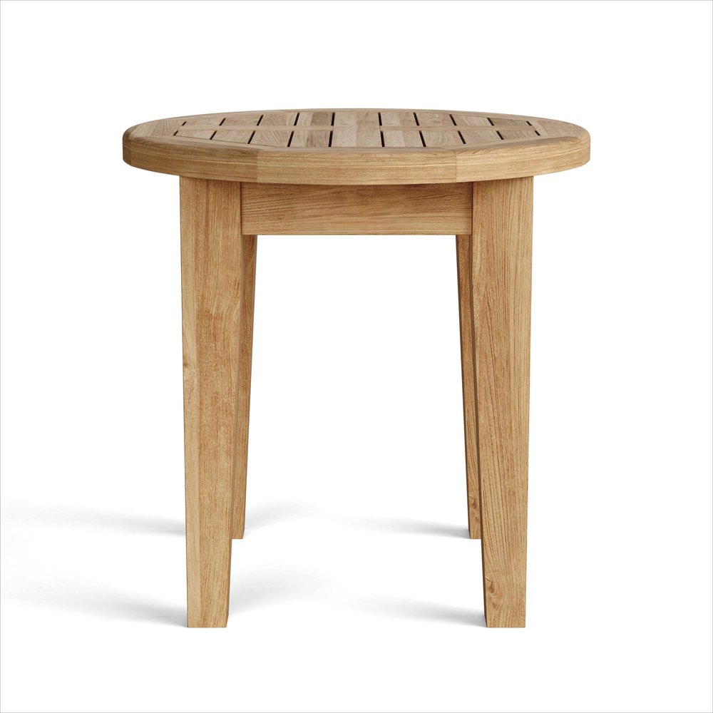Mesa auxiliar para exterior de madera maciza natural redondeada de 20"