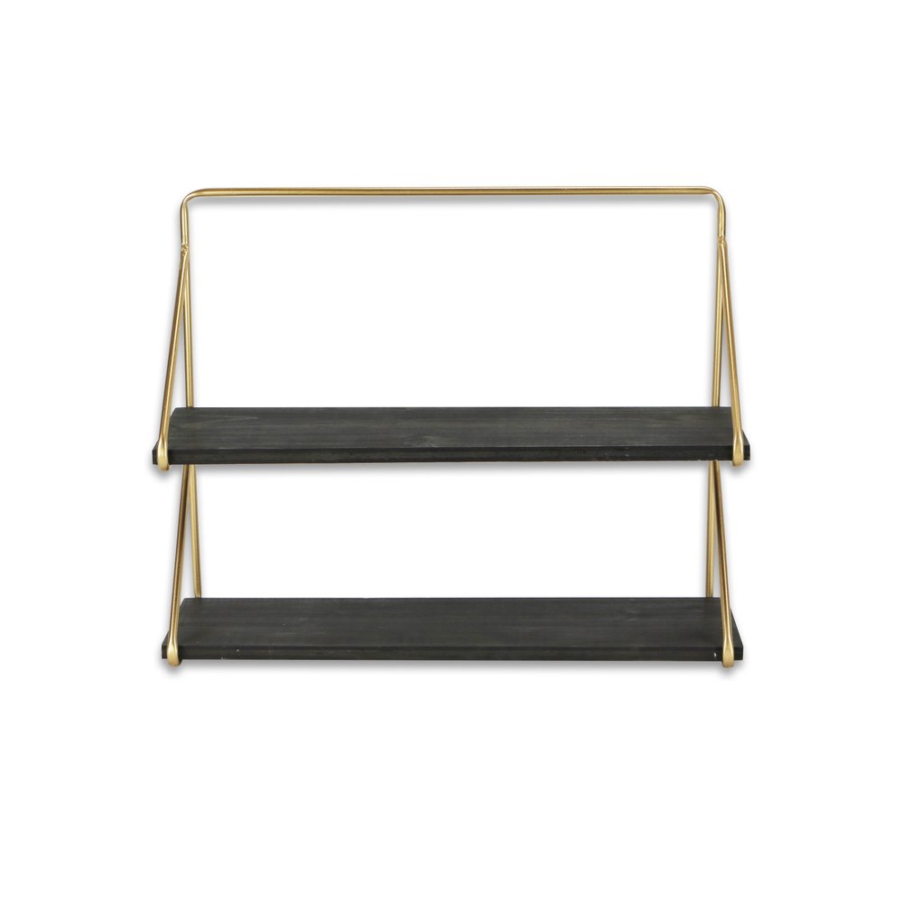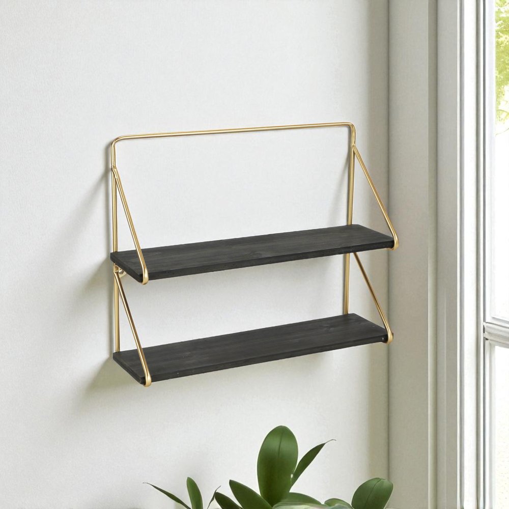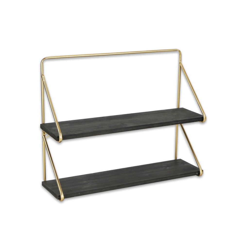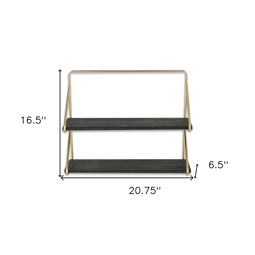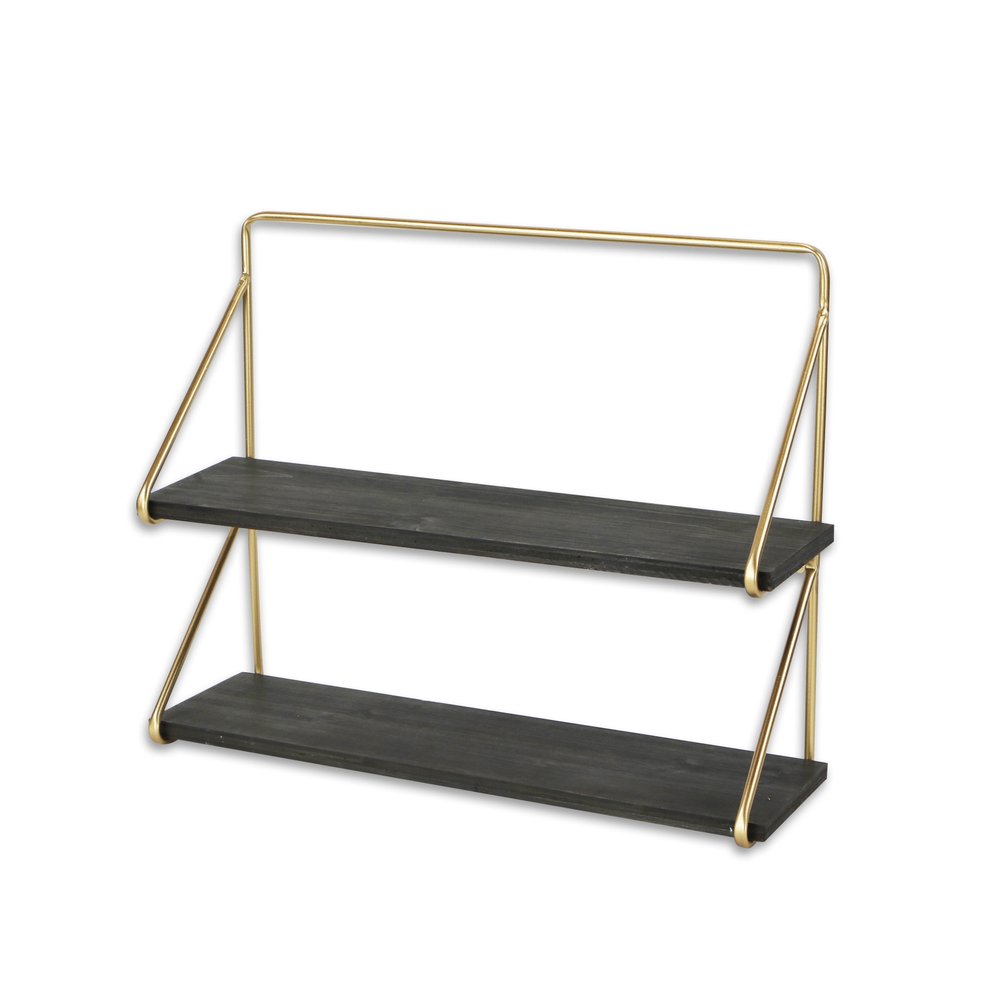 Estante de pared escalonado de 21" de metal y madera en gris oscuro y dorado