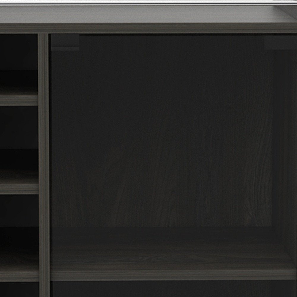 Introducing our espresso rolling bar cart with wine storage, the perfect addition to your contemporary home decor. This versatile bar cart features a display stand cabinet design with storage cabinets and shelves included, offering plenty of space to organize your glasses, bottles, and bar accessories. Its rectangular shape and freestanding mount type make it easy to move around and position wherever you need it. Crafted from durable particle board, the bar cart frame and top are made from high-quality manufactured wood with a sleek espresso finish. With a dedicated wine storage section that can hold up to six bottles, you can effortlessly entertain your guests and showcase your favorite wines. Complete with convenient wheels for easy mobility, this stylish bar cart is both functional and visually appealing. 35-inch H x 21.6-inch W x 16.3-inch D