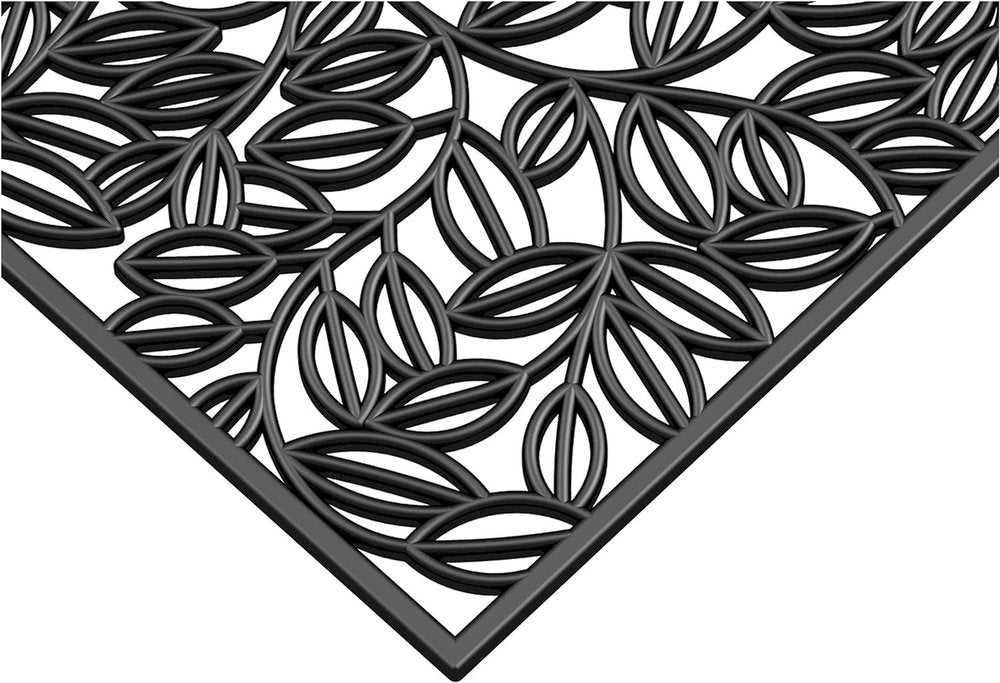 Ready to withstand heavy foot traffic, this 22-inch x 48-inch black rubber botanical leaves outdoor door mat is an ideal option for the front door or entrance way of your home or business. Crafted from rubber, this mat is not only functional but is a visually appealing accessory to welcome people to your home or business. Add this decorative mat to create a practical yet inviting welcome to all who enter. 22-inch H x 48-inch W x 0.5-inch D