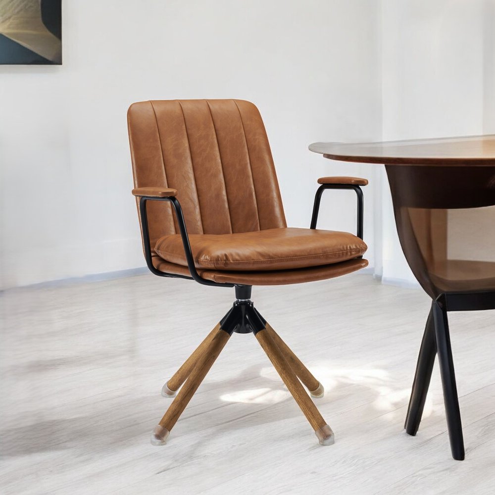 23" Off White Faux Leather And Brown Swivel Arm Chair