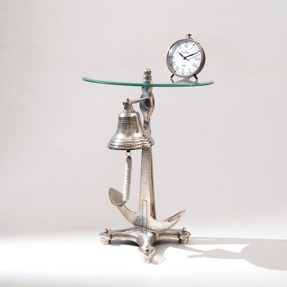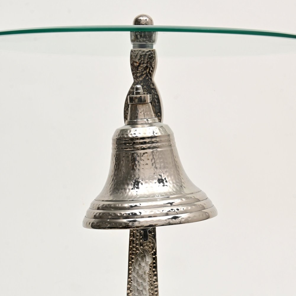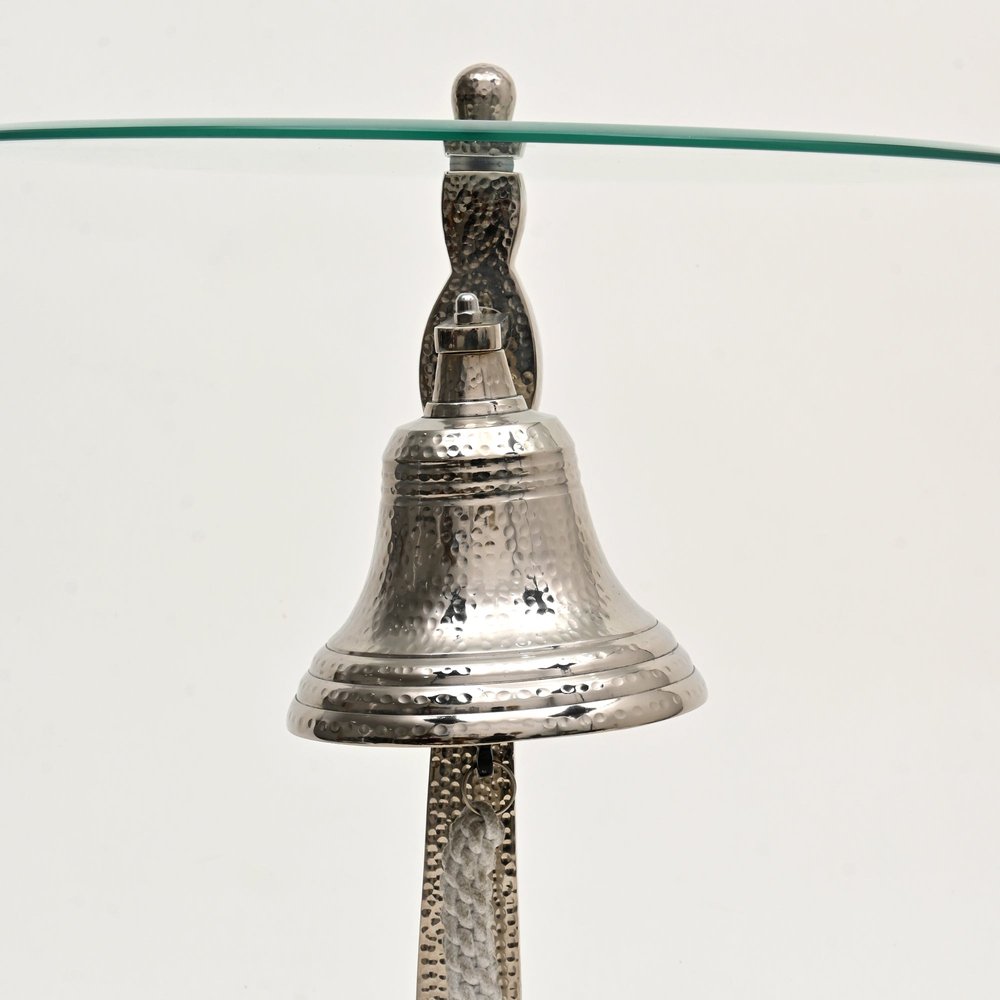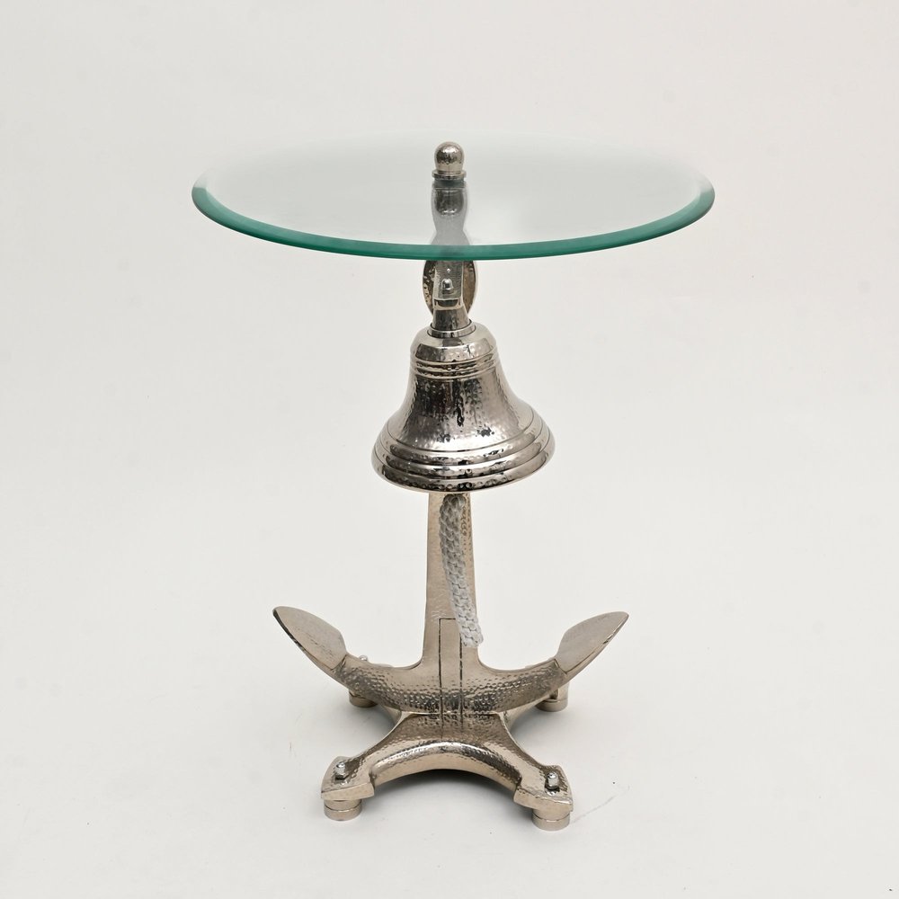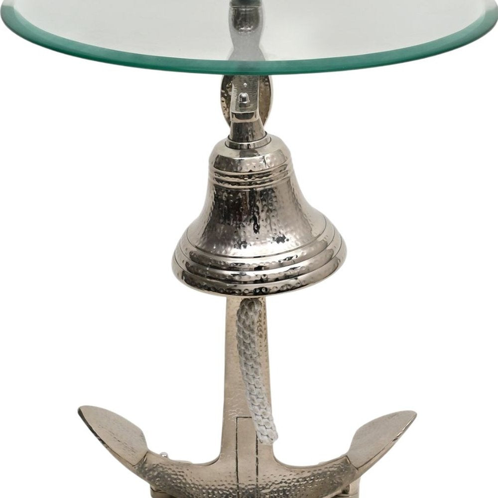 24" Clear and Silver Glass and Aluminum Nautical Bell End Table