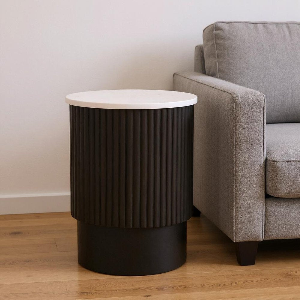 Show off your exquisite taste with this 25-inch black and white solid wood end table. The base of this table is made from solid wood in a black color that is a nice contrast to the white unavailable tabletop. An ideal location for placing your snacks and drinks, and a place to keep your lamp, frames, or other accessories. You can also use it as an entryway table to hold your keys. 25-inch h x 19-inch w x 19-inch d