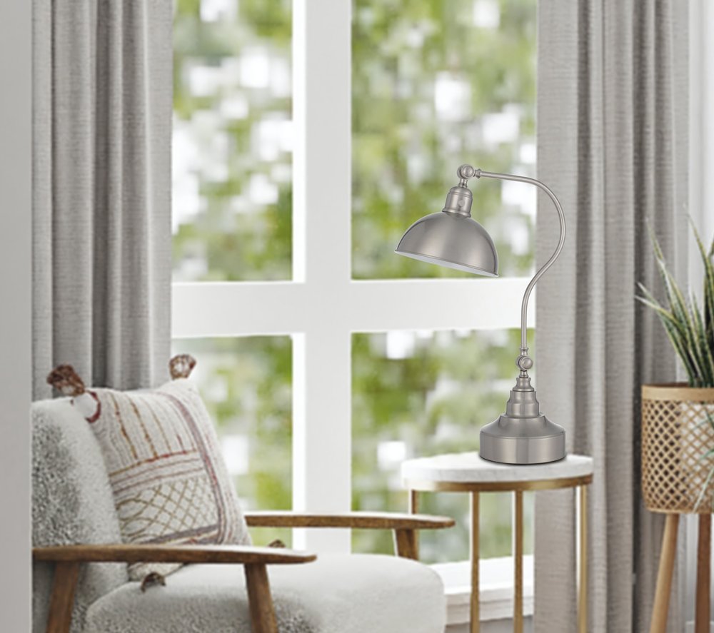 Esta lámpara de mesa de escritorio estilo farol de níquel de 63 cm con pantalla de cúpula de níquel es una excelente manera de iluminar cualquier rincón de tu hogar. La base de esta lámpara es de metal con acabado en tono níquel. La pantalla de cúpula de níquel le da un toque elegante y simétrico. Esta lámpara de escritorio proporciona iluminación de trabajo que iluminará tu área de trabajo para leer o escribir. Úsala en cualquier lugar y realza la estética de todo el espacio. Es perfecta para prácticamente cualquier decoración. 63 cm de alto x 23 cm de ancho x 45 cm de profundidad.
