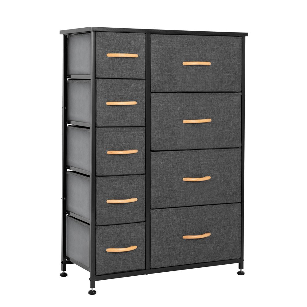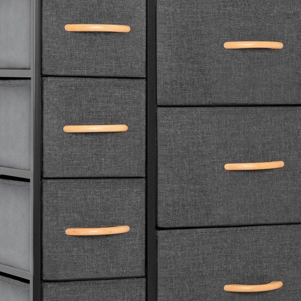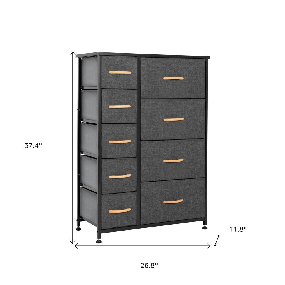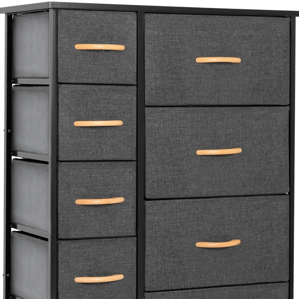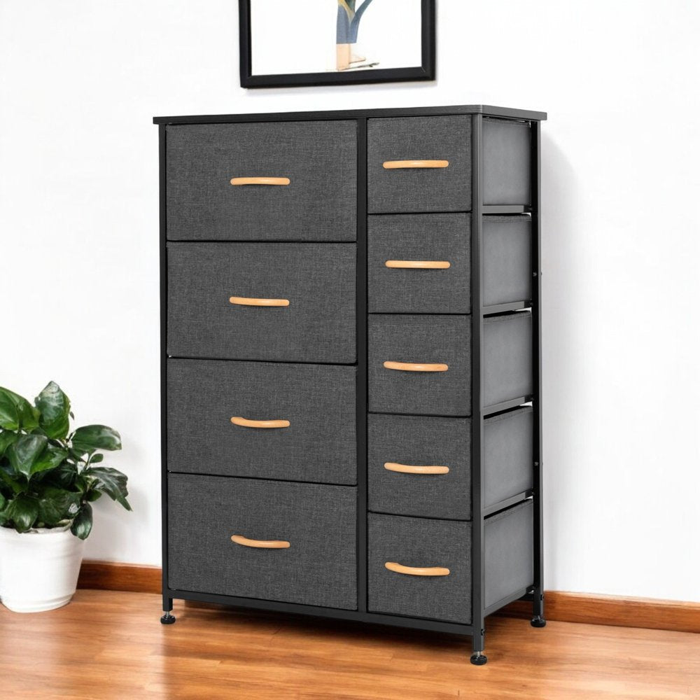 Cómoda de 27" con nueve cajones en acero y tela gris y negro