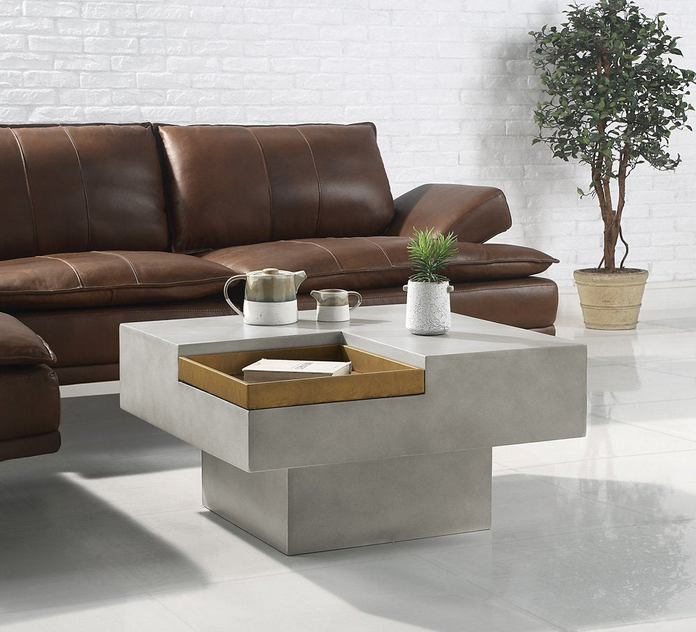 32" Gray Cement Square Distressed Pedestal Coffee Table