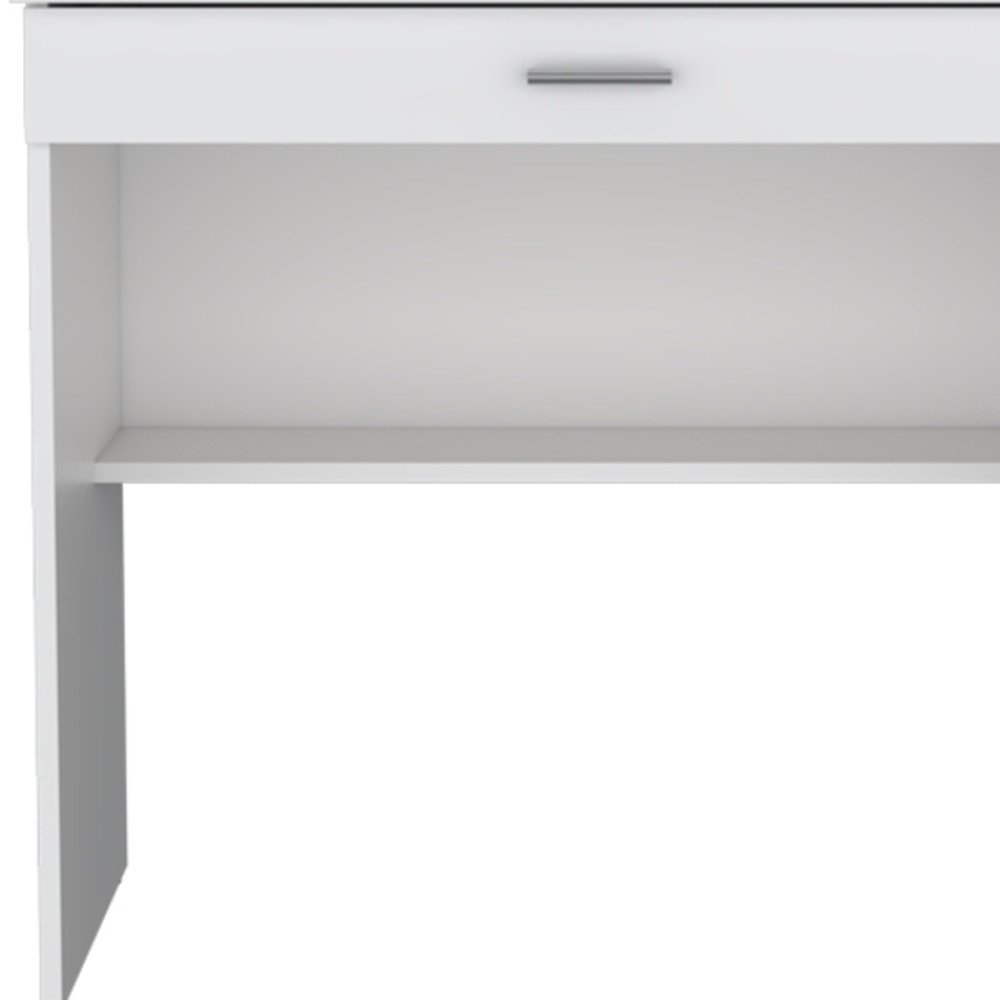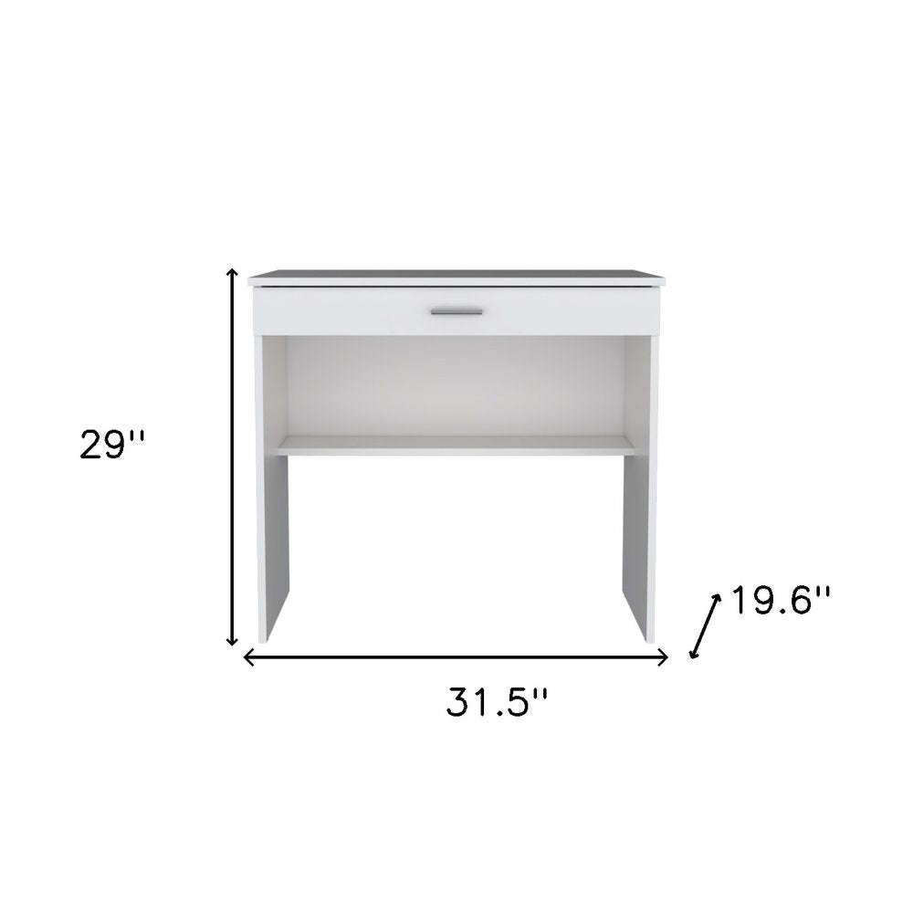Luce como un ejecutivo al incorporar este escritorio para computadora de madera blanca de 81 cm a tu oficina. Diseñado para integrarse fácilmente en la mayoría de los espacios, este escritorio rectangular de forma clásica convertirá tu habitación en un espacio de trabajo productivo. Un solo cajón te ofrece espacio de almacenamiento oculto para tus artículos esenciales de oficina. Diseñado para durar, este robusto escritorio está diseñado para brindar comodidad y eficiencia durante años. 73 cm de alto x 80 cm de ancho x 49 cm de profundidad.