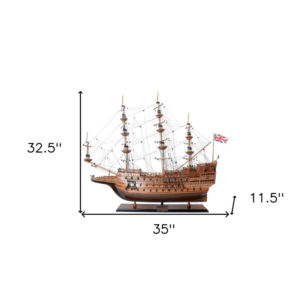 Escultura de barco Sovereign of the Seas de madera marrón de 33" pintada a mano