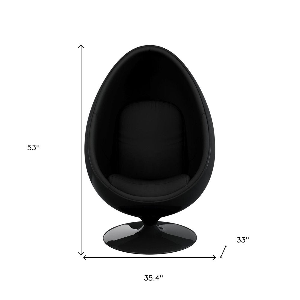 35" Black Fiberglass And Wool Swivel Egg Chair