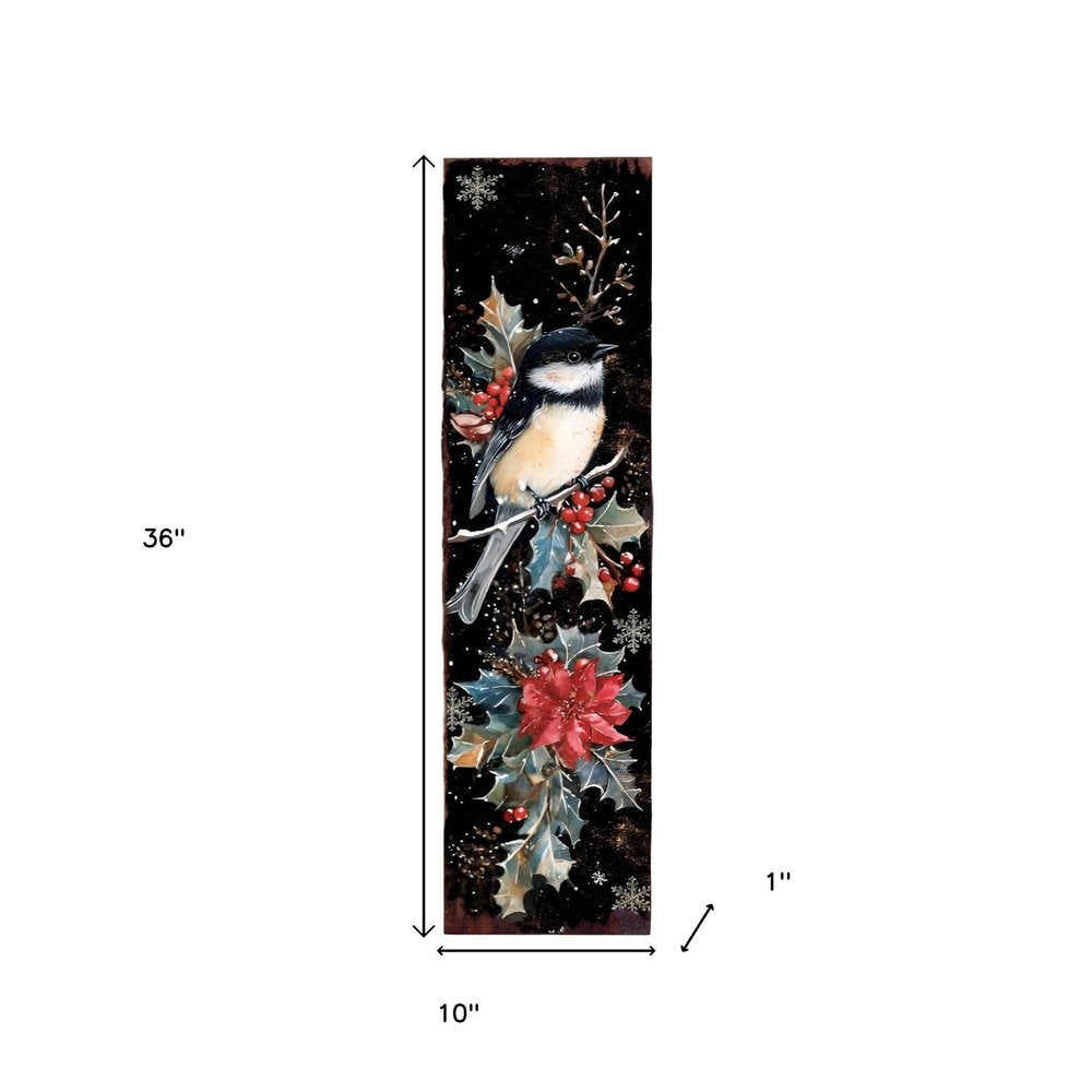Letrero navideño de madera maciza para porche de 36 pulgadas, color negro, rojo y blanco, con diseño de carbonero