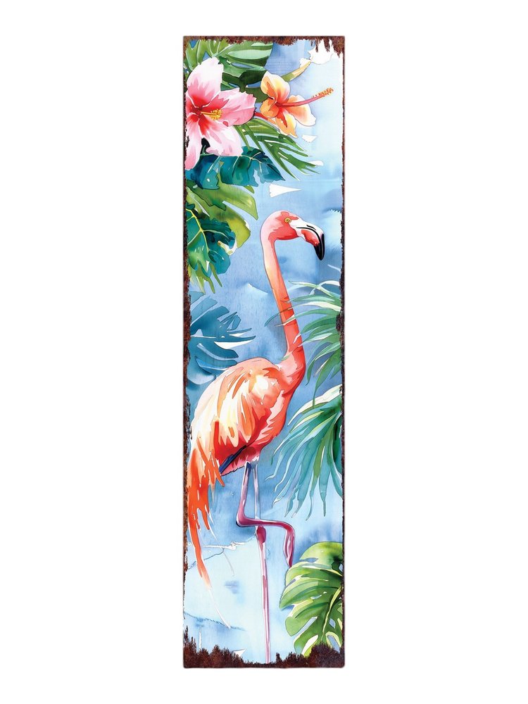 Letrero para porche de madera maciza con diseño de flamencos tropicales, de 36 pulgadas, en azul y coral