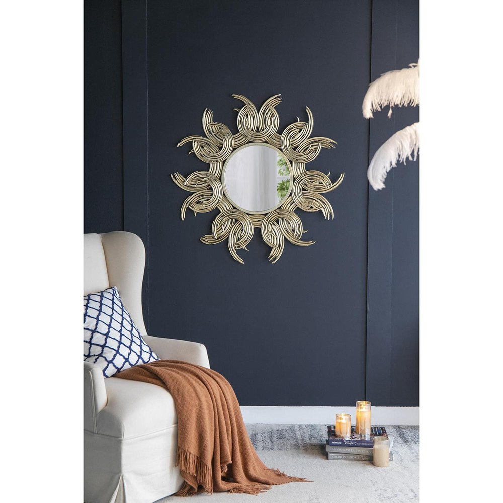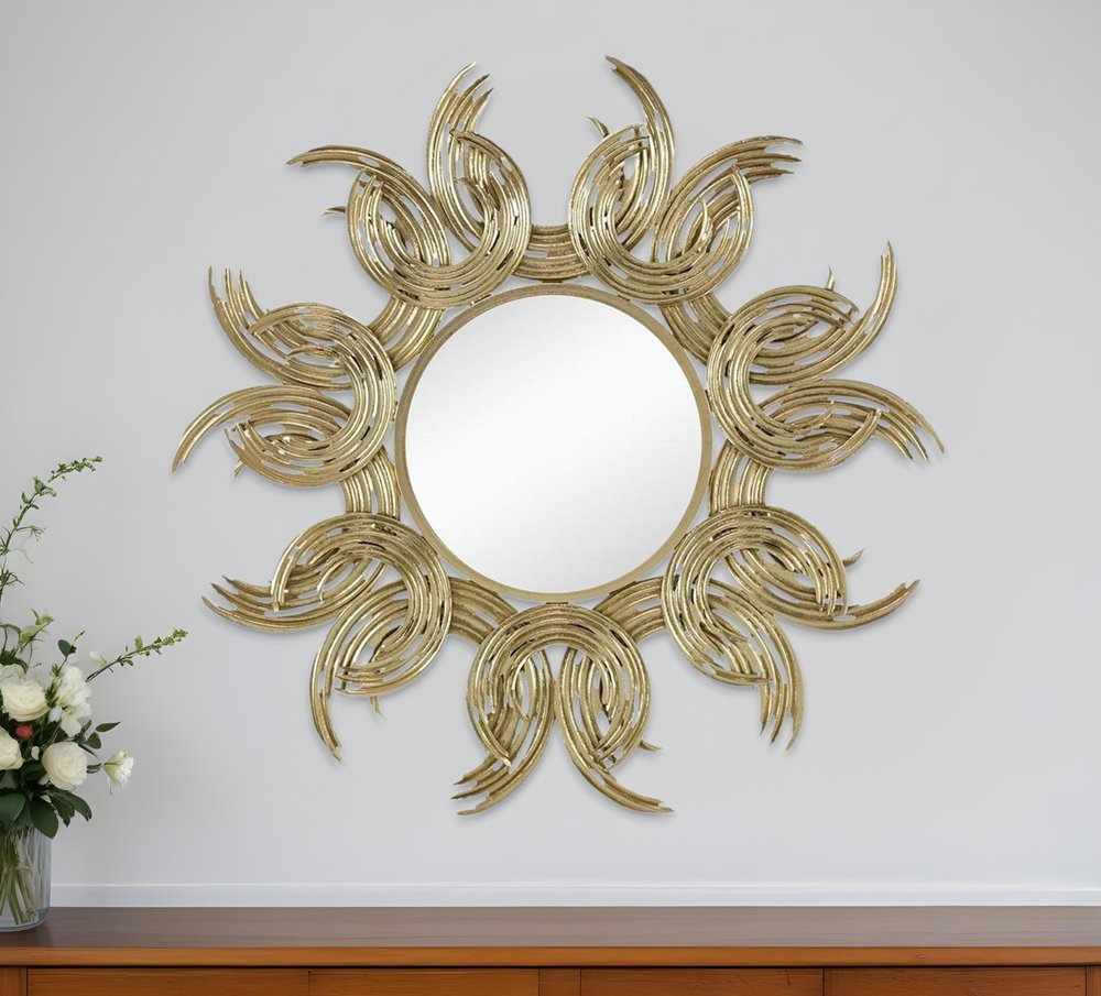 Espejo decorativo abstracto dorado con marco de hierro y diseño de rayos de sol de 37"