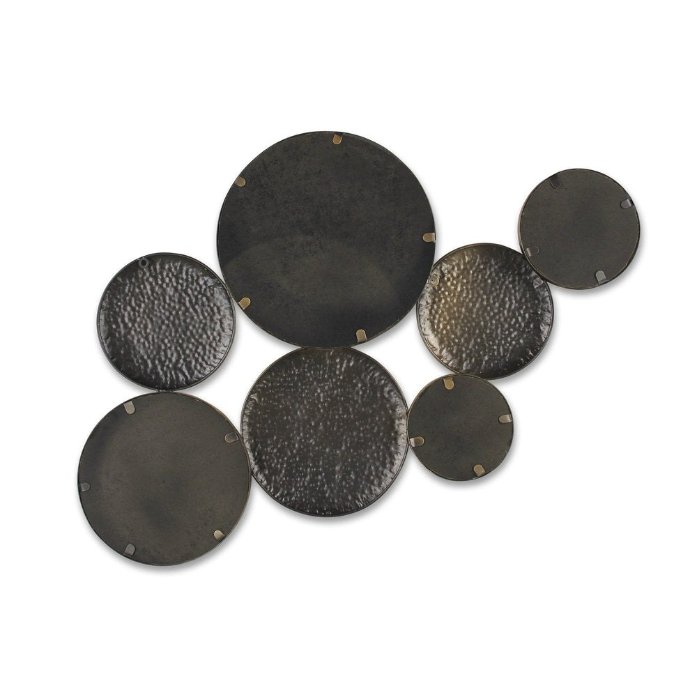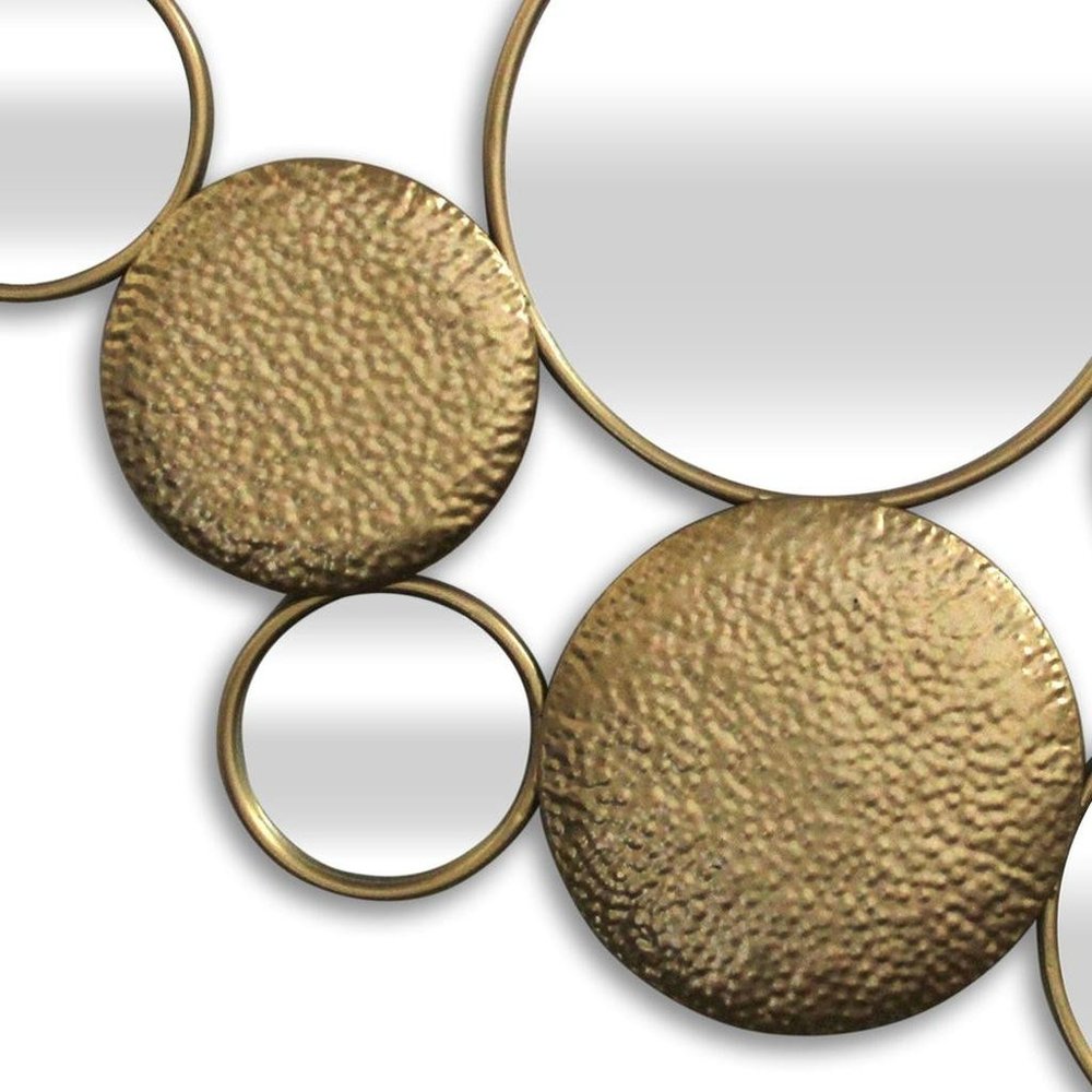 Dale un toque de estilo a cualquier espacio de tu hogar con este espejo decorativo de pared de 94 cm de metal dorado y cristal espejado. Este diseño único combina arte de pared y espejos para brindar un toque práctico y moderno a tu espacio, añadiendo un toque contemporáneo a tu decoración. Perfecto para casi cualquier habitación, este conjunto consta de seis espejos redondos de diferentes tamaños unidos por discos de metal martillado. Todos con un acabado dorado que le da a la pieza un aire sofisticado y a la vez natural. Añade este espejo decorativo de excepcional calidad a tu espacio para un hermoso reflejo y un toque de estilo sofisticado. 58 cm de alto x 94 cm de ancho x 3,8 cm de profundidad.