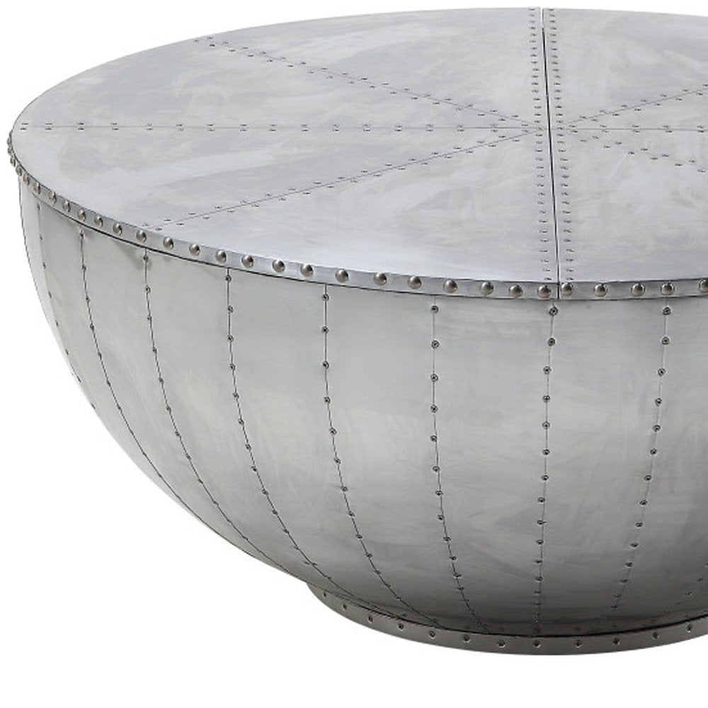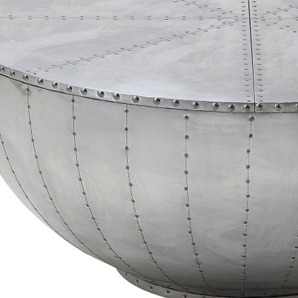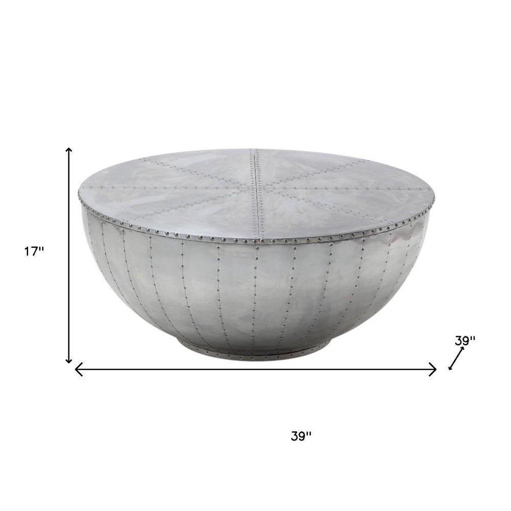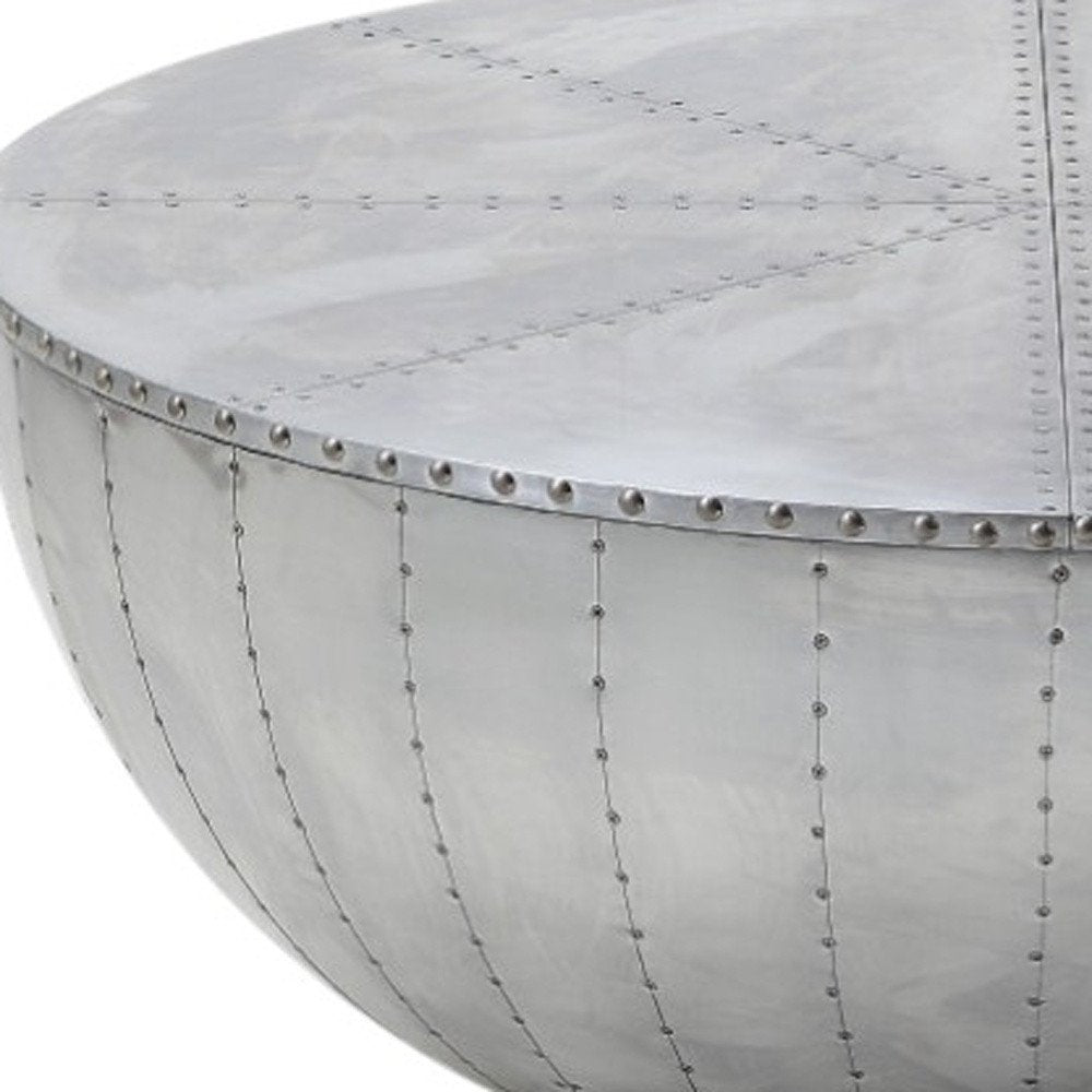 39" Silver Aluminum Aviator Round Drum Coffee Table