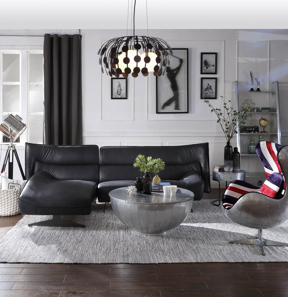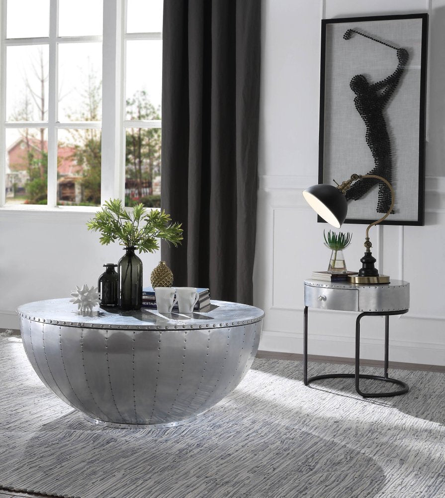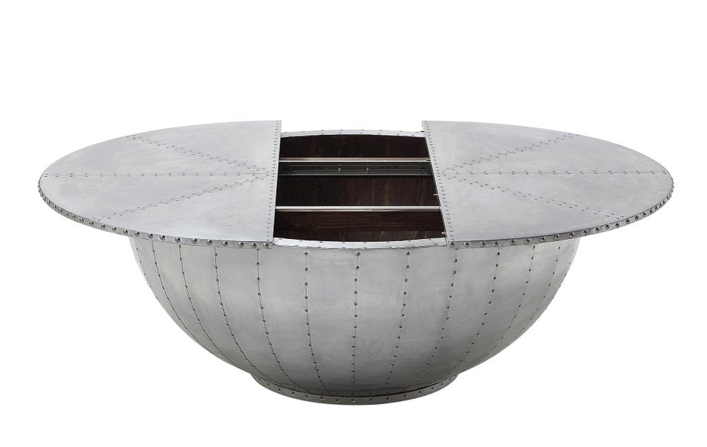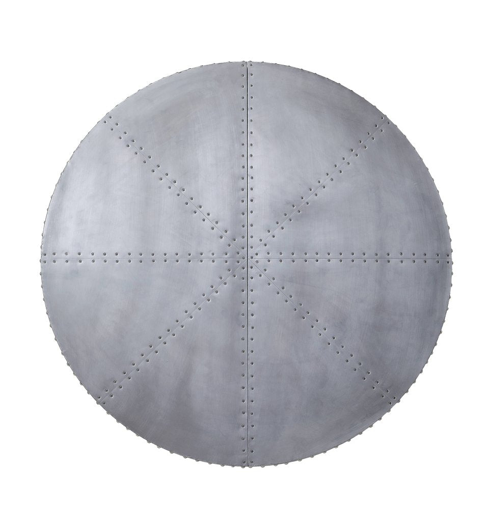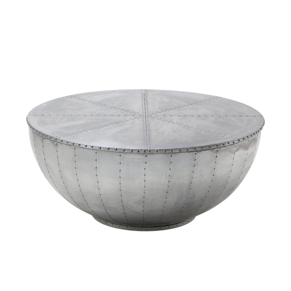 39" Silver Aluminum Aviator Round Drum Coffee Table