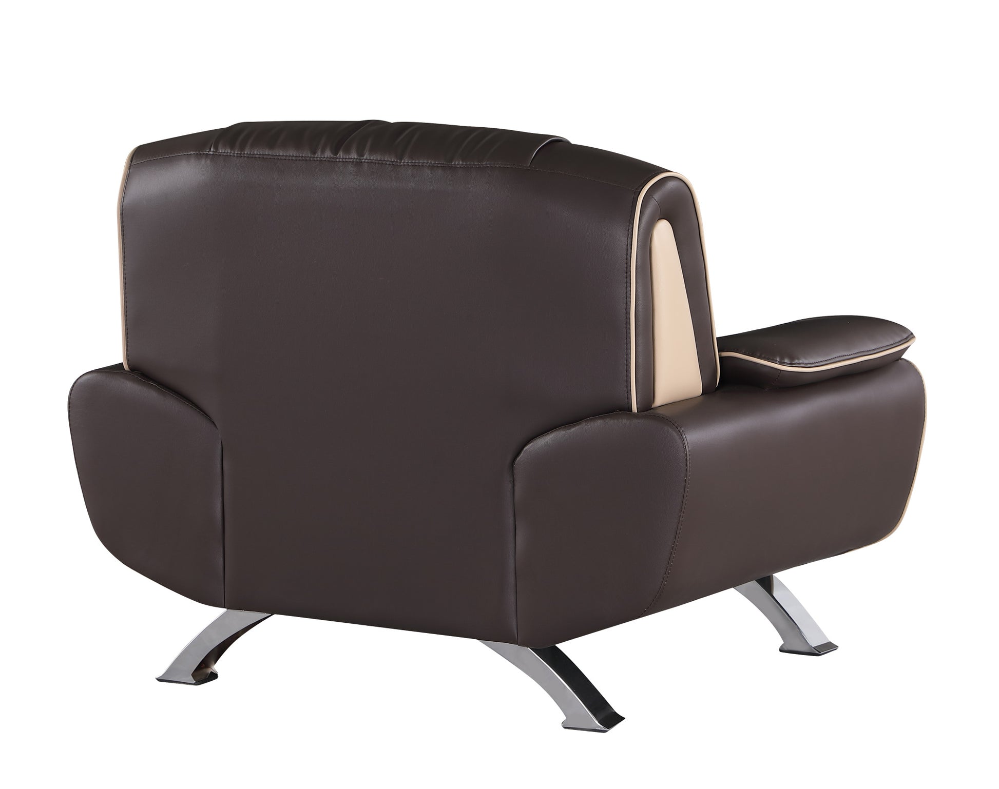 This 47-inch brown and silver leather match club chair will add a beautiful decorative accent to your decor. This sturdy leather match upholstered club chair comes in a chic solid brown color to give your space just the right look. The sturdy inner frame is built with high quality solid and manufactured wood, includes armrests, and features a tight back that is accented with soft and comfortable cushioning. 40-inch h x 47-inch w x 40-inch d.
