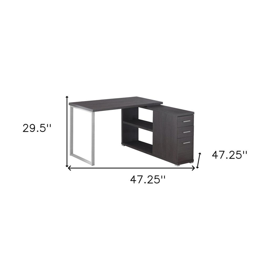 This 47-inch white and silver l shape computer desk with three drawers will help to turn your office space into an executive suite. Multiple drawers give this desk plenty of hidden storage for your office essentials. Forged with premium craftsmanship and design, this desk is built to last. 29.5-inch H x 47.25-inch W x 47.25-inch D