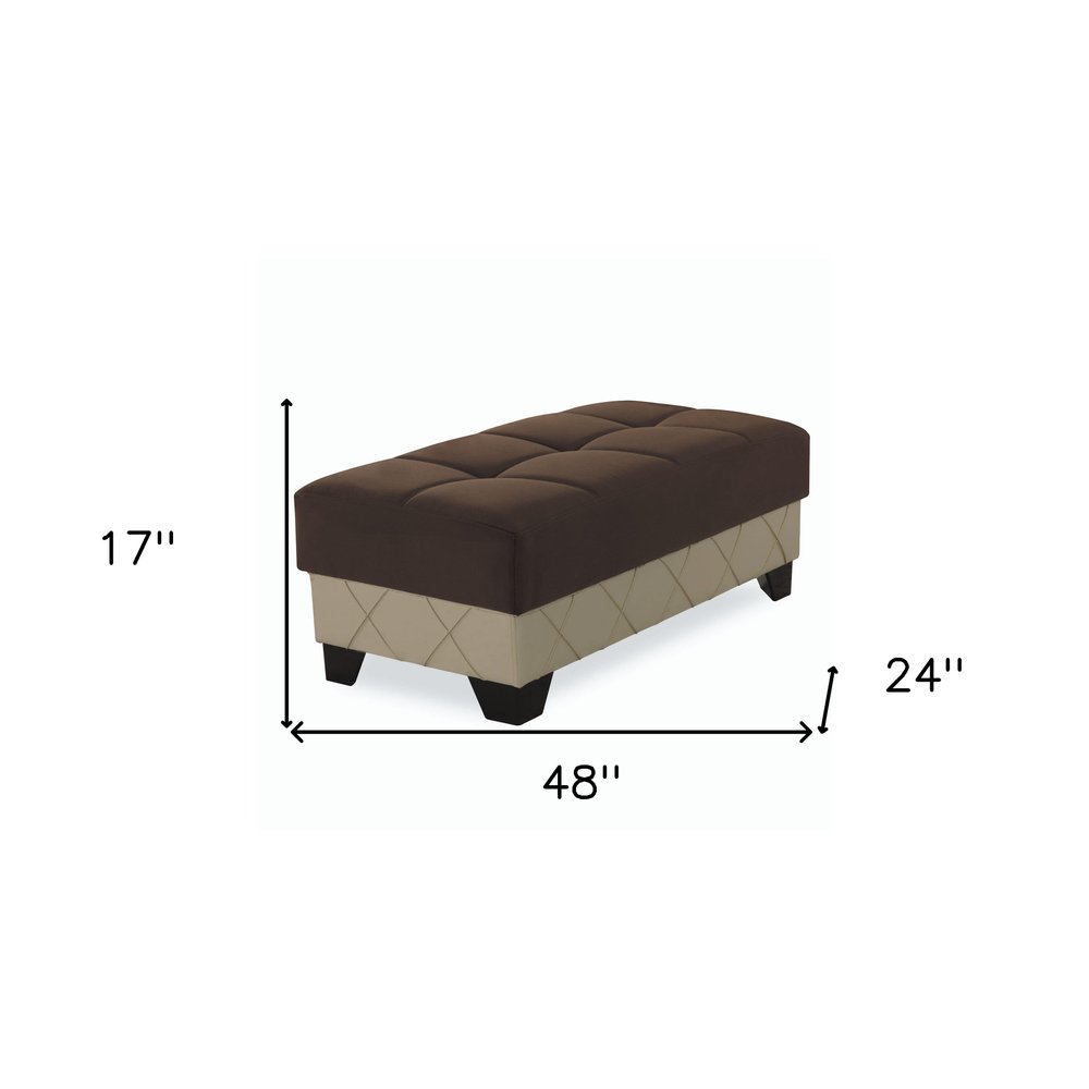 48" Brown and Cream Faux Leather And Microfiber Tufted Storage Ottoman