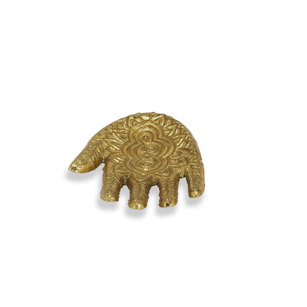Renueva tu espacio con esta práctica y atractiva bandeja de hamza de metal dorado de 12,7 cm, hecha a mano. Hecha de metal, esta resistente bandeja es perfecta para servir o para exhibir otros objetos tan hermosos como ella. Destinada exclusivamente para uso decorativo, no alimentario, es la pieza decorativa perfecta. 2,5 cm de alto x 11,4 cm de ancho x 18,3 cm de profundidad.