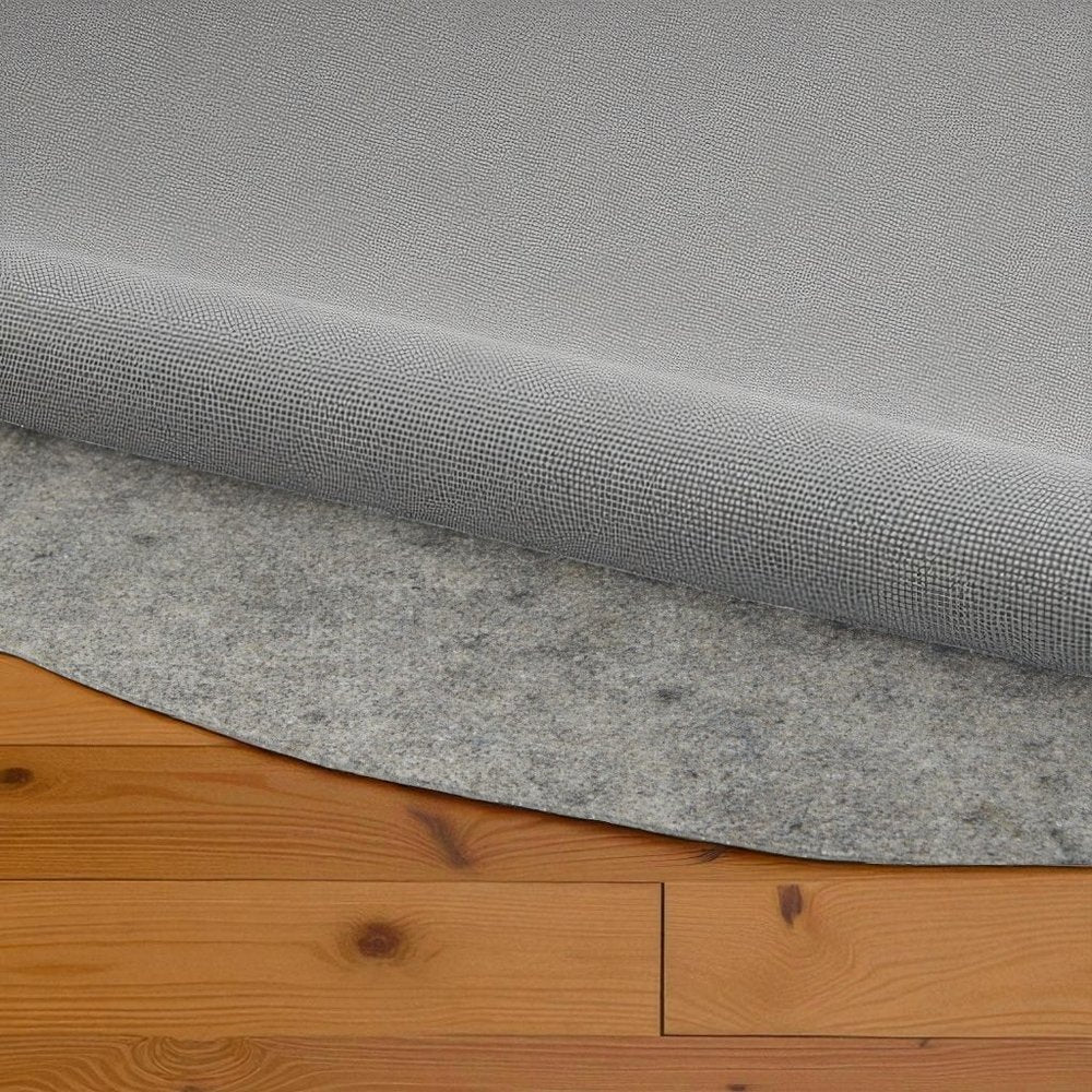 Enhance your space with the 5-foot round gray non slip rug pad. Designed specifically for hardwood floors, this pad ensures stability underfoot and protects your flooring from scratches. The synthetic material offers durability and resilience while providing a plush layer for added comfort. The round shape is perfect for accentuating circular rugs, creating a cohesive look in any room, and can be cut to size. Experience peace of mind with its non-slip feature, which keeps your rug securely in place, preventing unwanted slips and slides. 60-inch h x 60-inch w x 0.2-inch d.