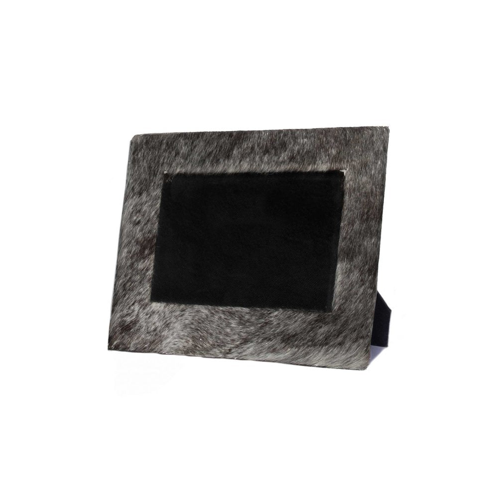 The 5-inch x 7-inch gray cowhide hanging & tabletop picture frame with mat is a versatile addition to your decor. This single picture frame allows for both horizontal and vertical orientation, making it perfect for showcasing your favorite memories. Crafted from luxurious cowhide, it adds a touch of elegance to any room. The rectangular shape complements various styles, enhancing your space effortlessly. Whether displayed on a tabletop or hanging on the wall, this frame will make your cherished photos stand out beautifully. It's designed to accommodate a picture size of 5-inch x 7-inch, providing the ideal setting for your treasured moments. Transform your home with this stylish and functional picture frame. 10.00-inch h x 8.00-inch w x 0.50-inch d.