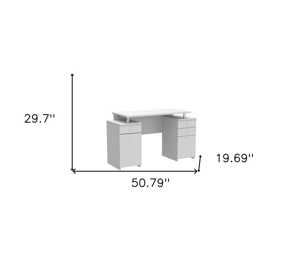 This 51-inch white computer desk with five drawers will help to turn your office space into an executive suite. With a classic shape and style, this well-made rectangular desk is a stylish way to keep your office space looking good. Multiple drawers give this desk plenty of hidden storage for your office essentials. Forged with premium craftsmanship and design, this desk is built to last. 29.7-inch H x 50.79-inch W x 19.69-inch D