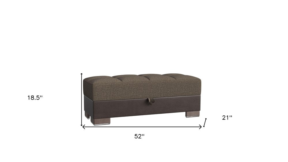 52" Brown Chenille And Faux Leather Tufted Storage Ottoman