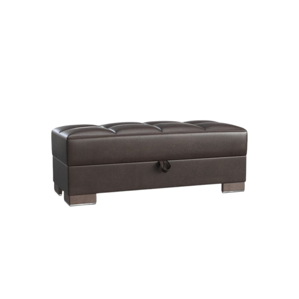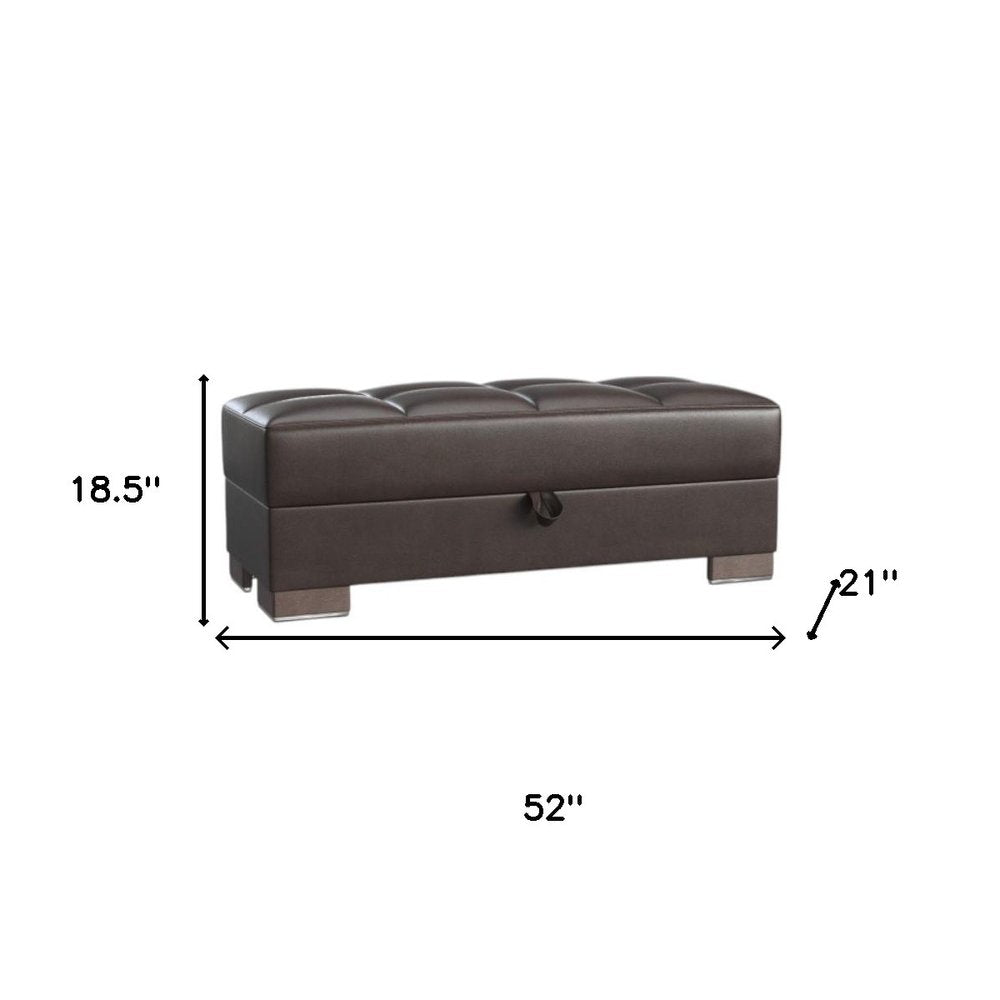 52" Brown Faux Leather Tufted Storage Ottoman